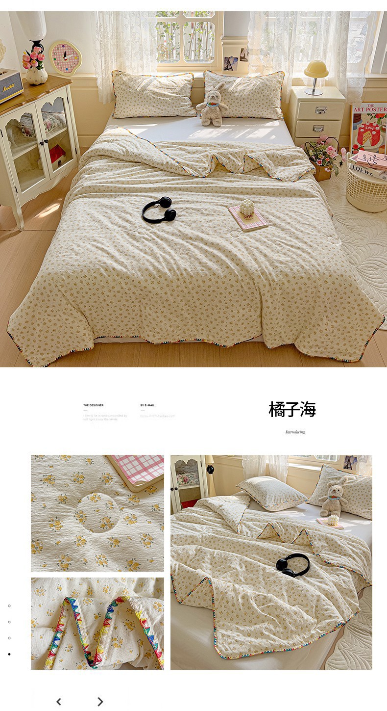 클래스 A 클라우드 느낌 더블 레이어 원사 여름 퀼트 4 피스 세트 쉘 에지 슈퍼 소프트 에어컨 퀼트 작은 꽃 싱글 여름 쿨 퀼트 얇은 퀼트스토어 가기