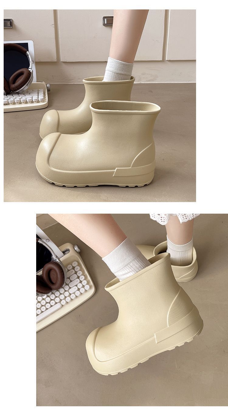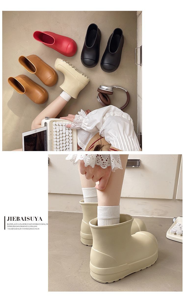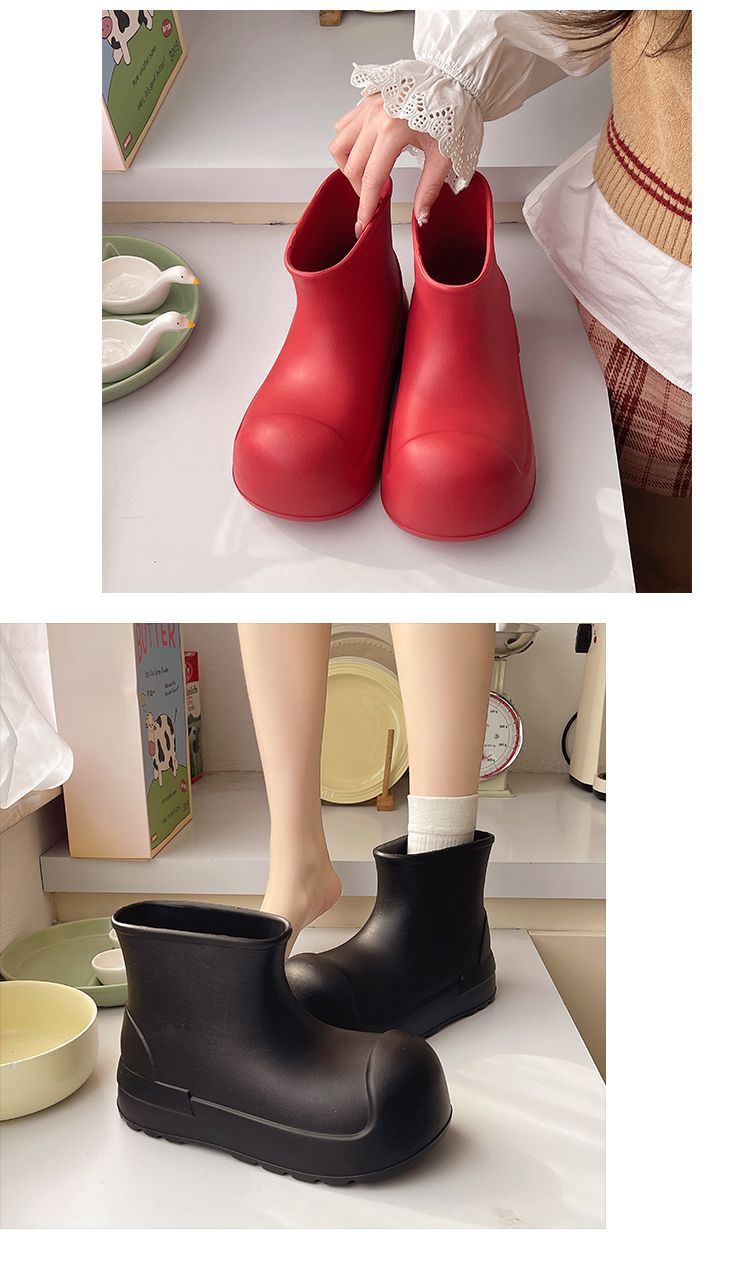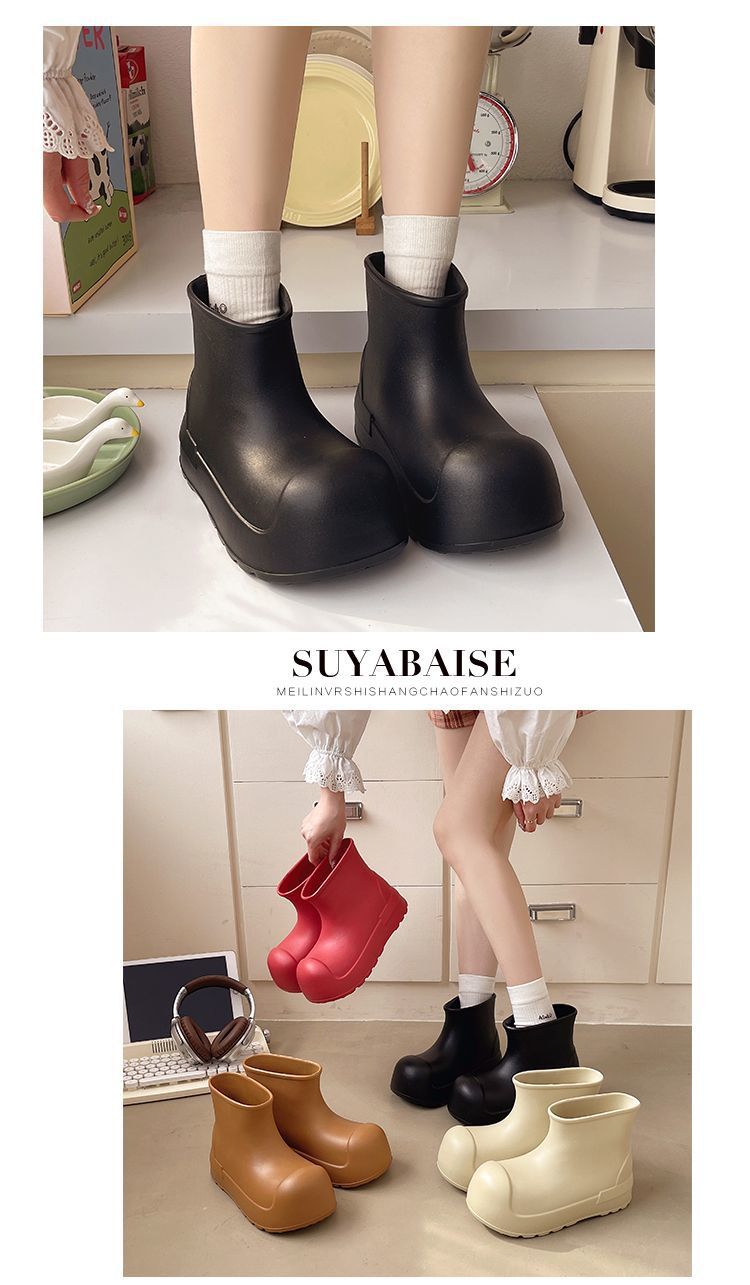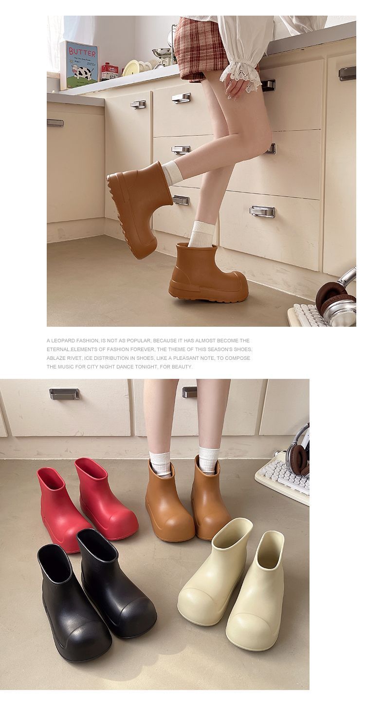 새로운 스타일의 여성용 레인부츠, 로우탑, 두꺼운 밑창, 미끄럼 방지 워터슈즈, 내마모성 및 방수 EVA 사계절용 두꺼운 광대 신발스토어 가기