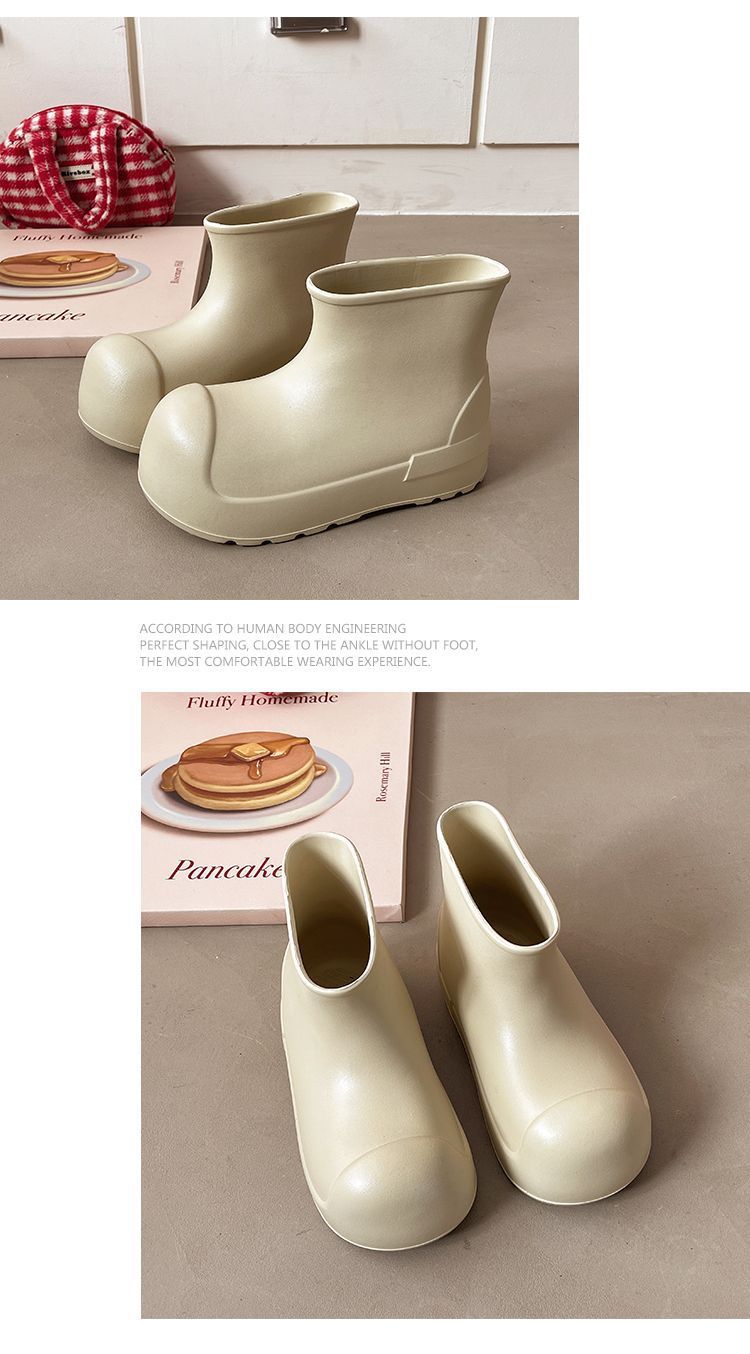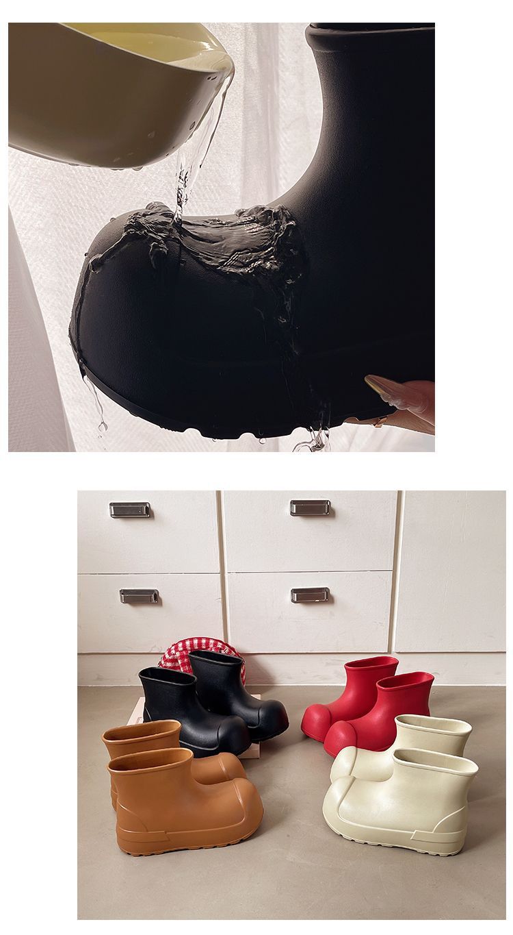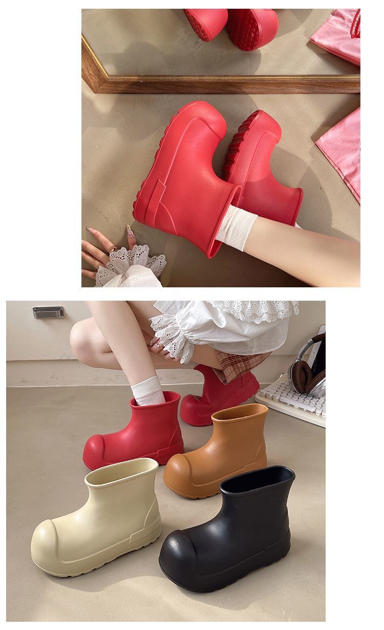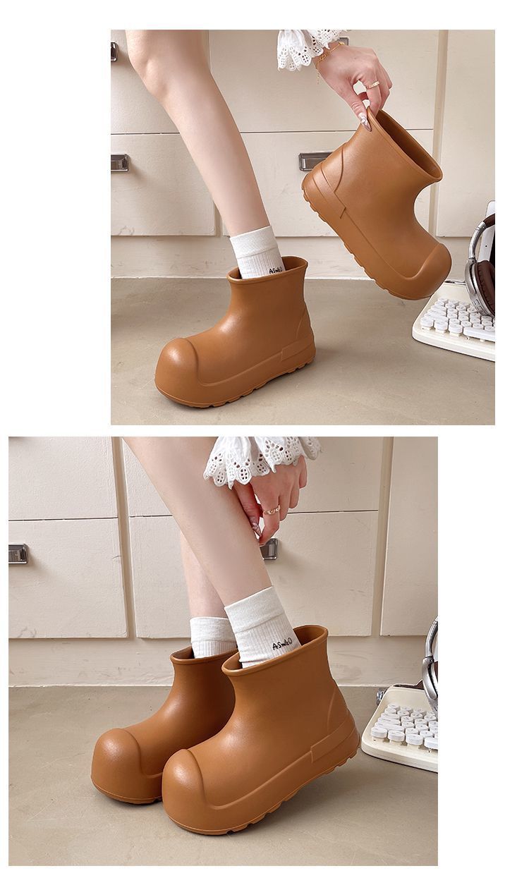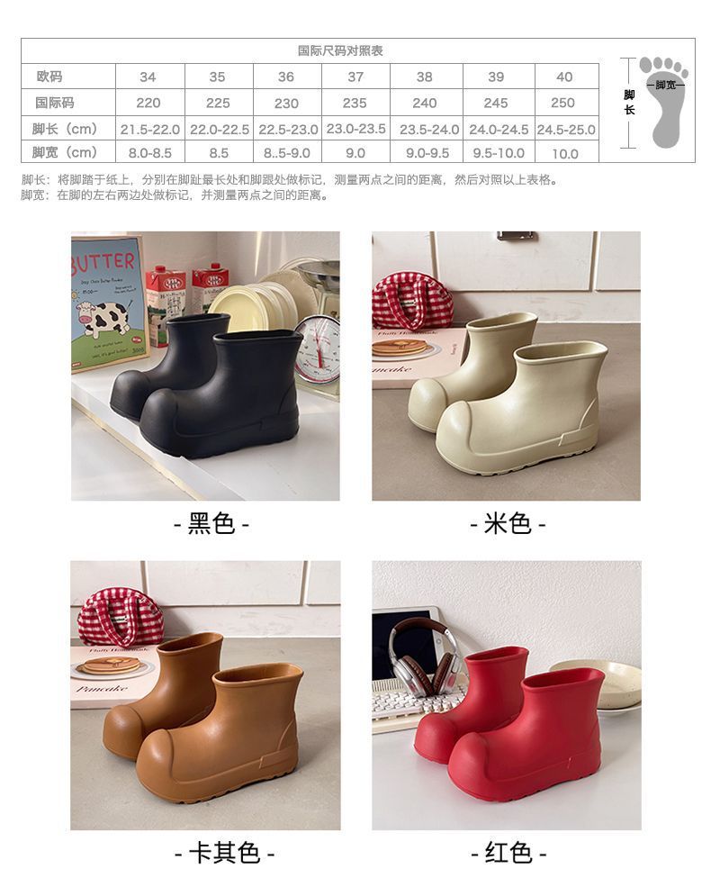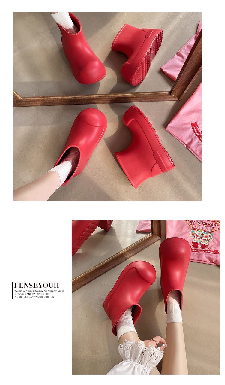 새로운 스타일의 여성용 레인부츠, 로우탑, 두꺼운 밑창, 미끄럼 방지 워터슈즈, 내마모성 및 방수 EVA 사계절용 두꺼운 광대 신발스토어 가기