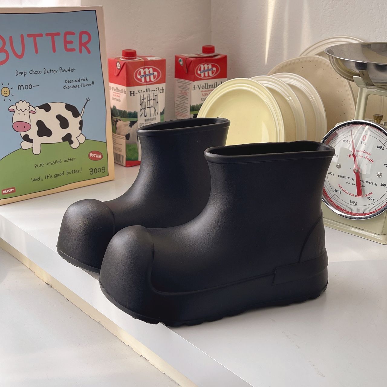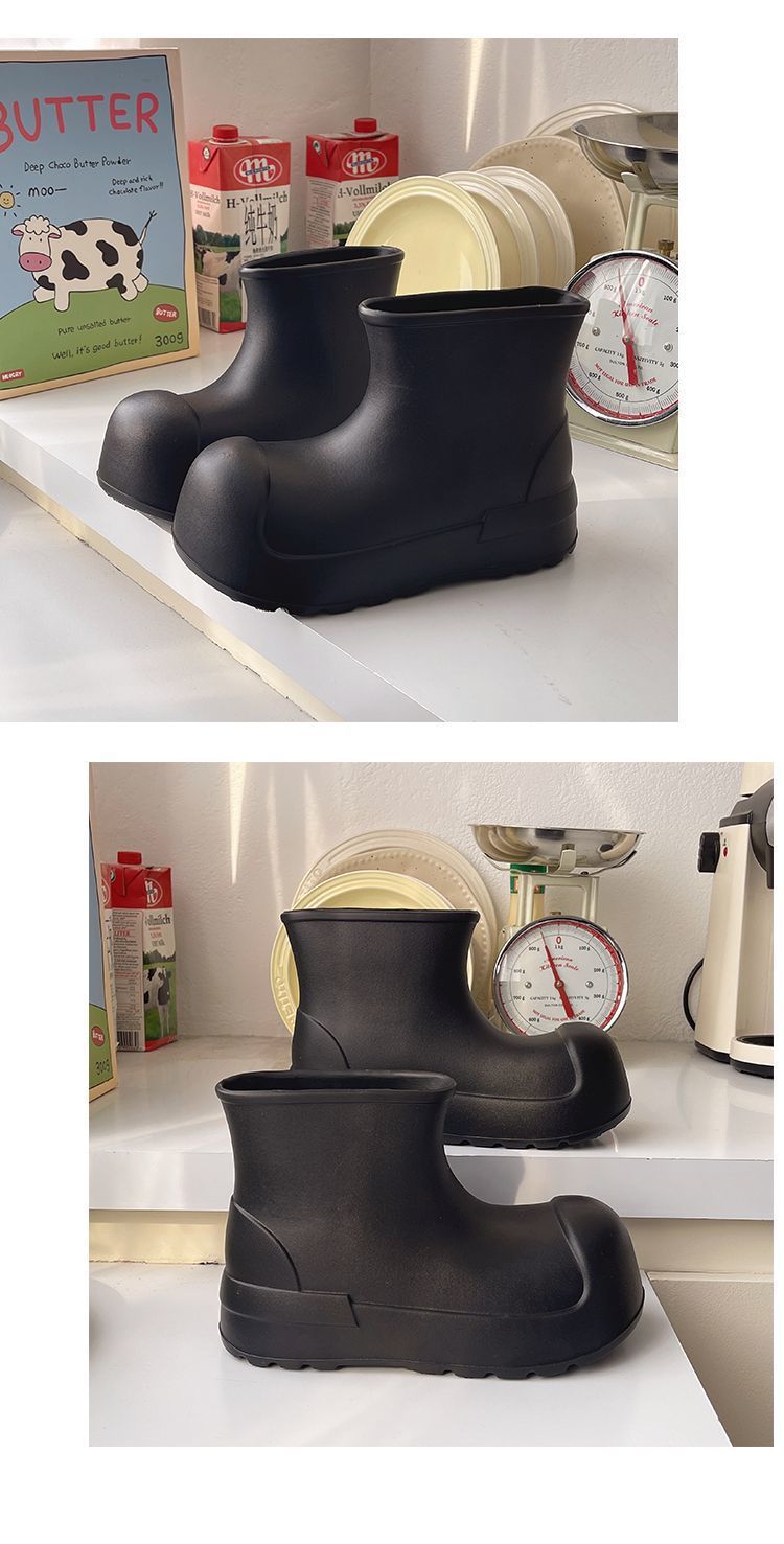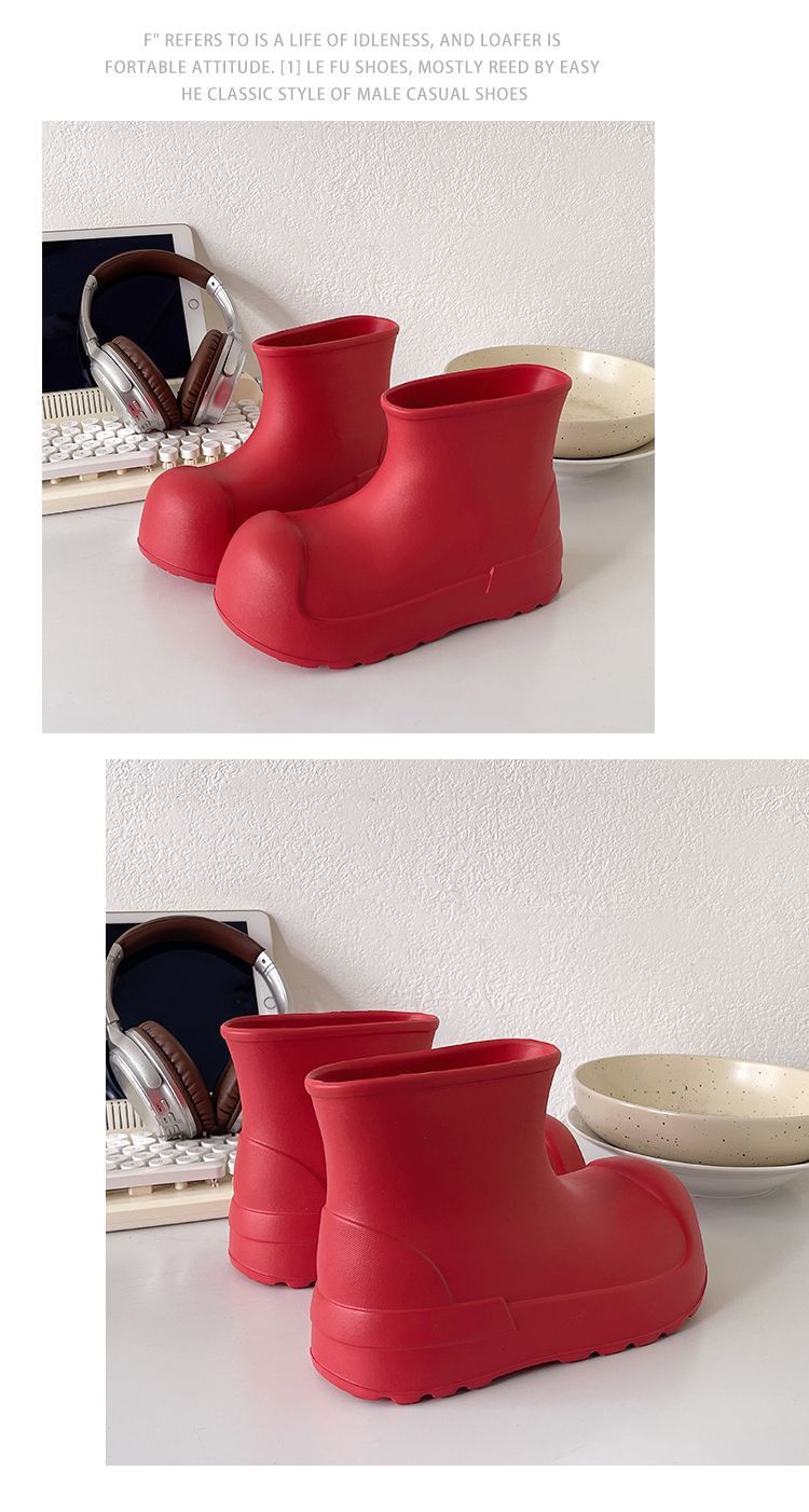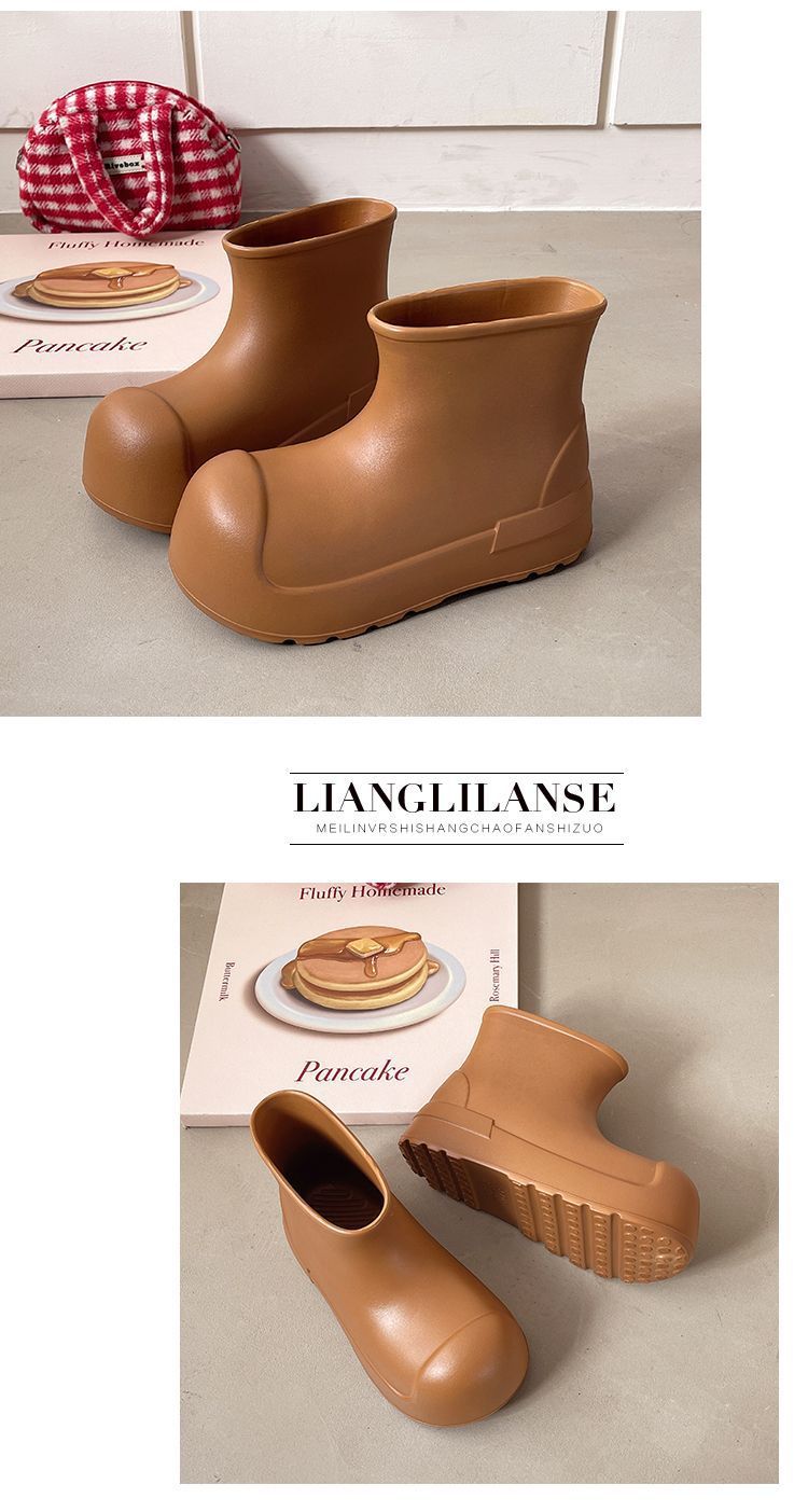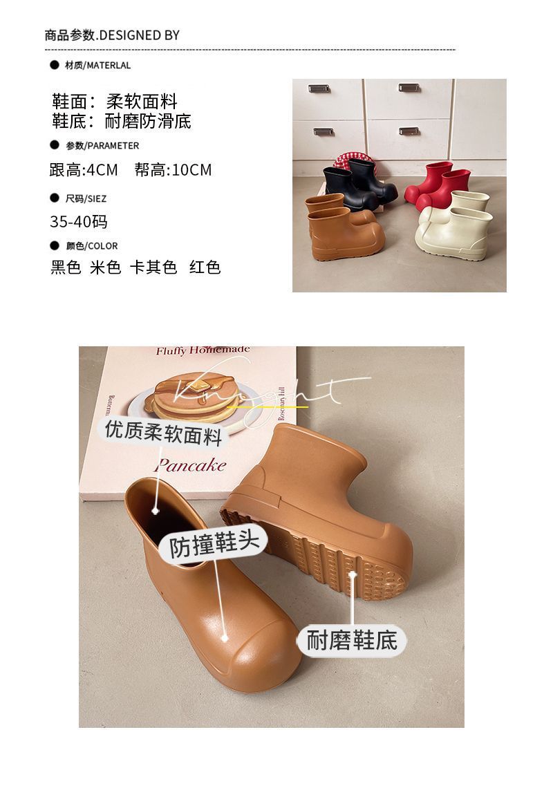 새로운 스타일의 여성용 레인부츠, 로우탑, 두꺼운 밑창, 미끄럼 방지 워터슈즈, 내마모성 및 방수 EVA 사계절용 두꺼운 광대 신발스토어 가기