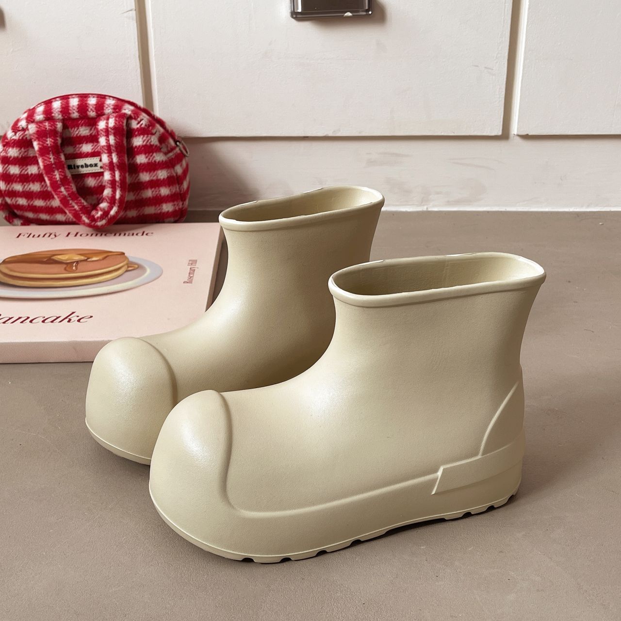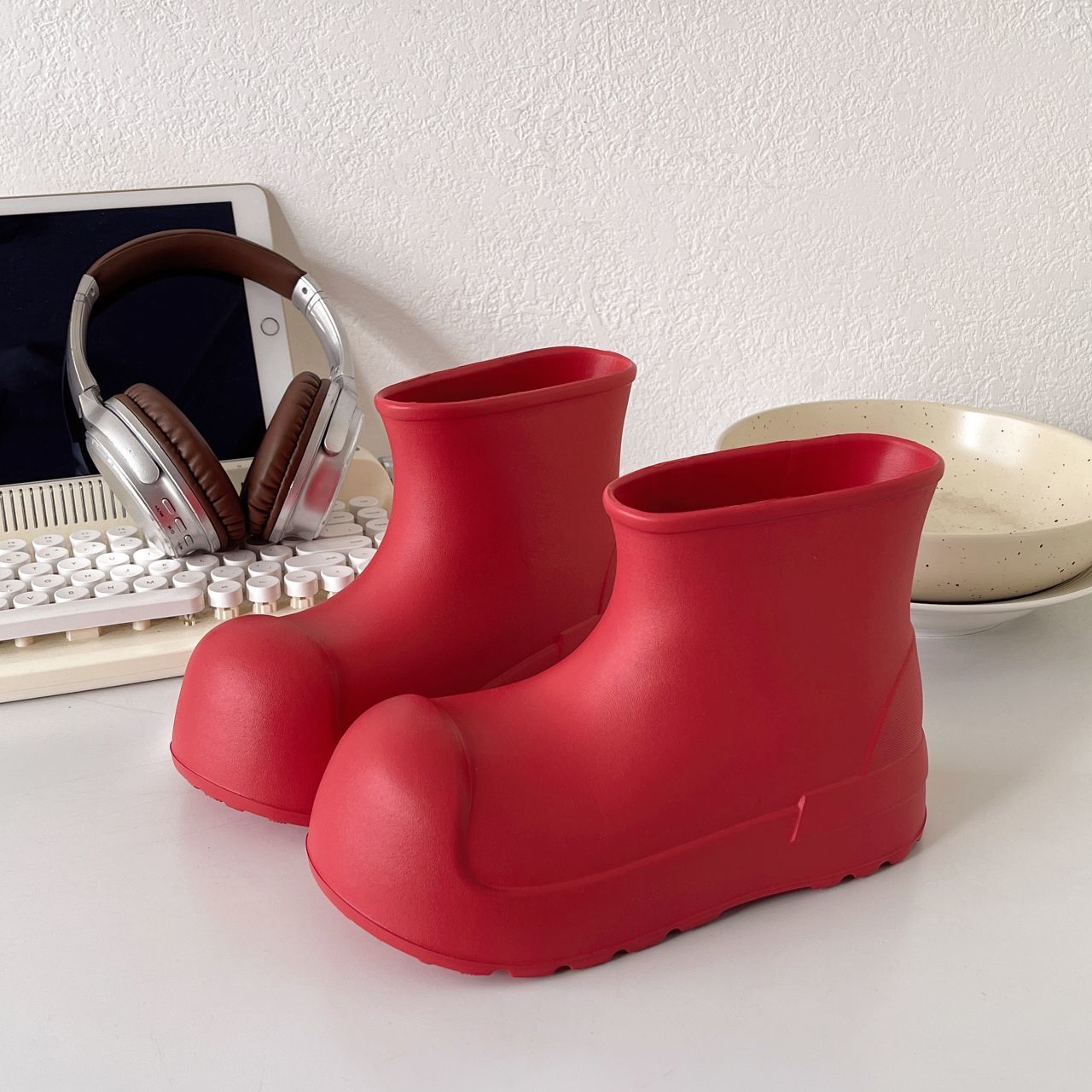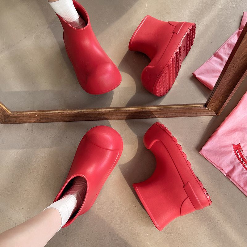새로운 스타일의 여성용 레인부츠, 로우탑, 두꺼운 밑창, 미끄럼 방지 워터슈즈, 내마모성 및 방수 EVA 사계절용 두꺼운 광대 신발