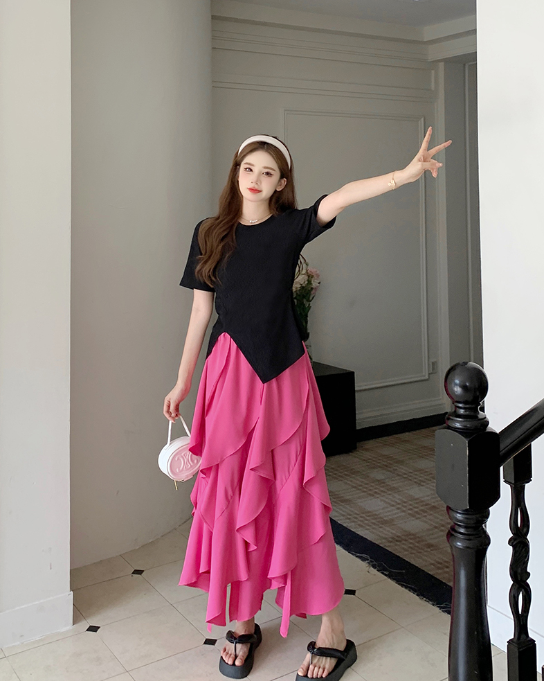 플러스 사이즈 도파민 착용 치마 세트 여성의 여름 지방 자매 약간의 뚱뚱한 나이 감소 살포-슬리밍 프렌치 투피스 세트