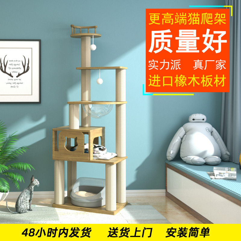 고급 단단한 나무 고양이 등반 랙 고양이 교육 장난감 고양이 둥지 공간 캡슐 고양이 점프 테이블 대마 로프 고양이 잡아 열