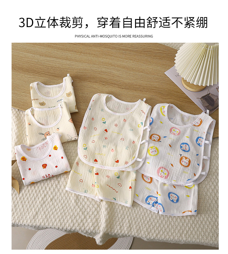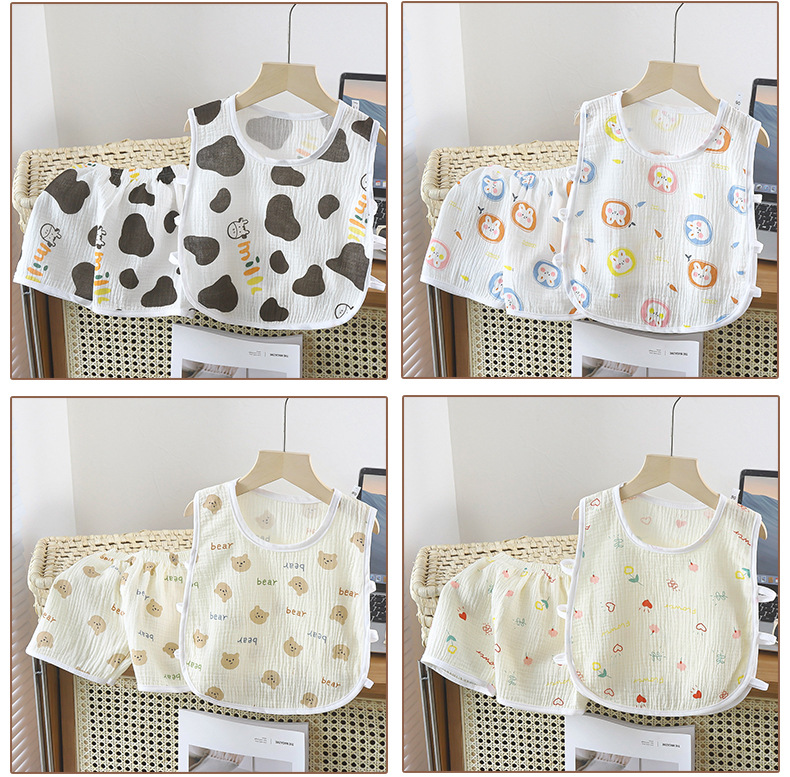 아동용 민소매 양복, 여름용 유아용 거즈 아동복, 반바지, 남녀 아기 조끼, 비파 투피스 양복
