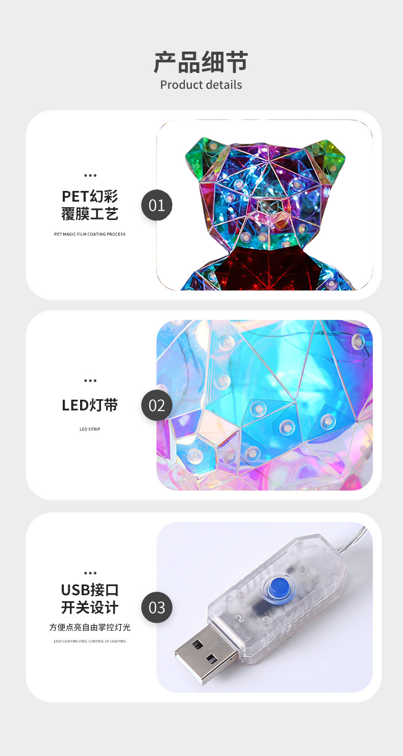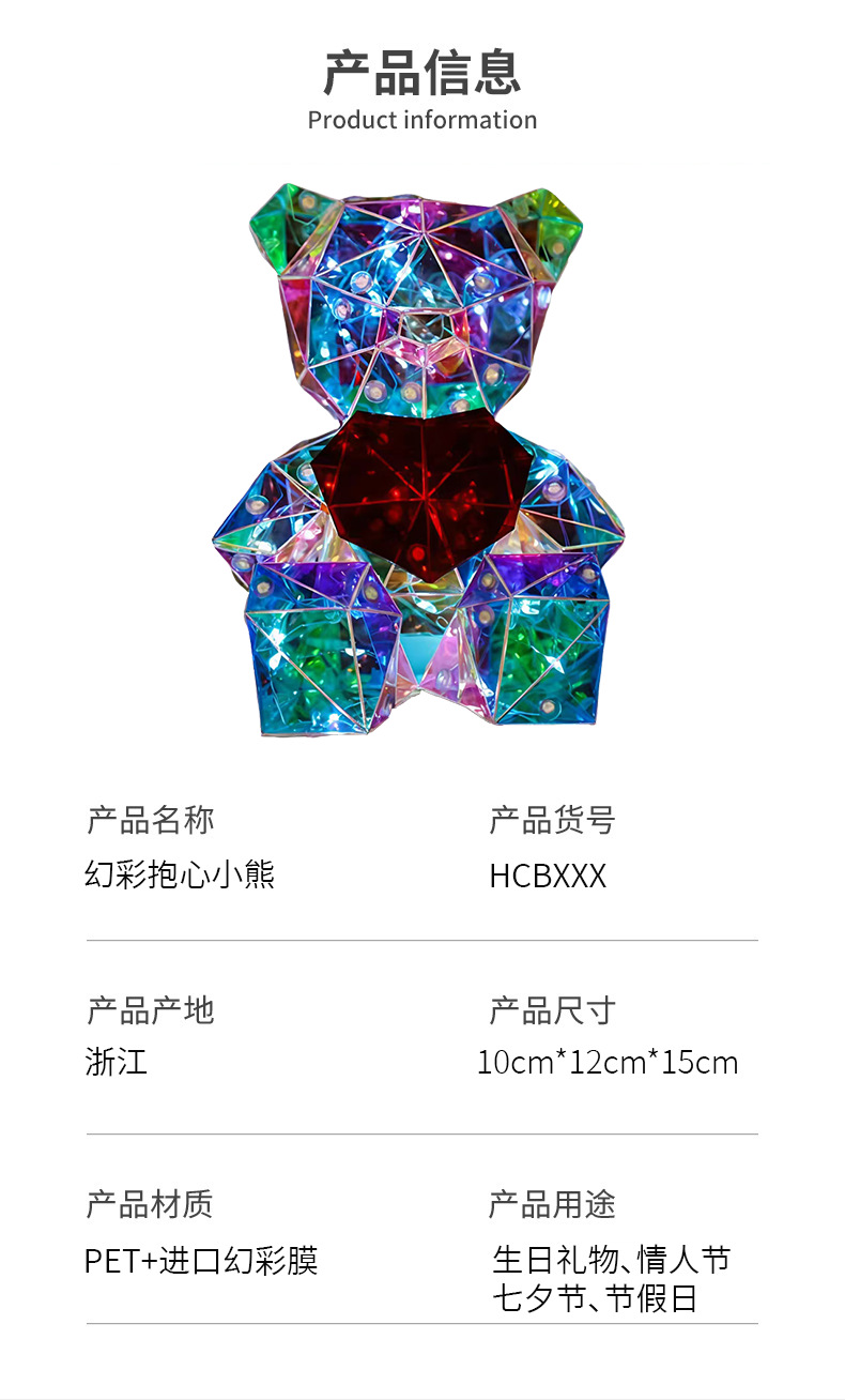 국경 간 공급 매직 컬러 하트 베어 장식품 생일 선물 TEMU 아마존 발렌타인 데이 창조적 인 선물 공장