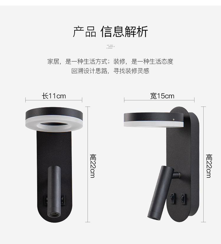 침실 침실 벽 램프 스위치 회전 가능한 스포트라이트 현대 간단한 창조적 인 성격 호텔 엔지니어링 객실스토어 가기