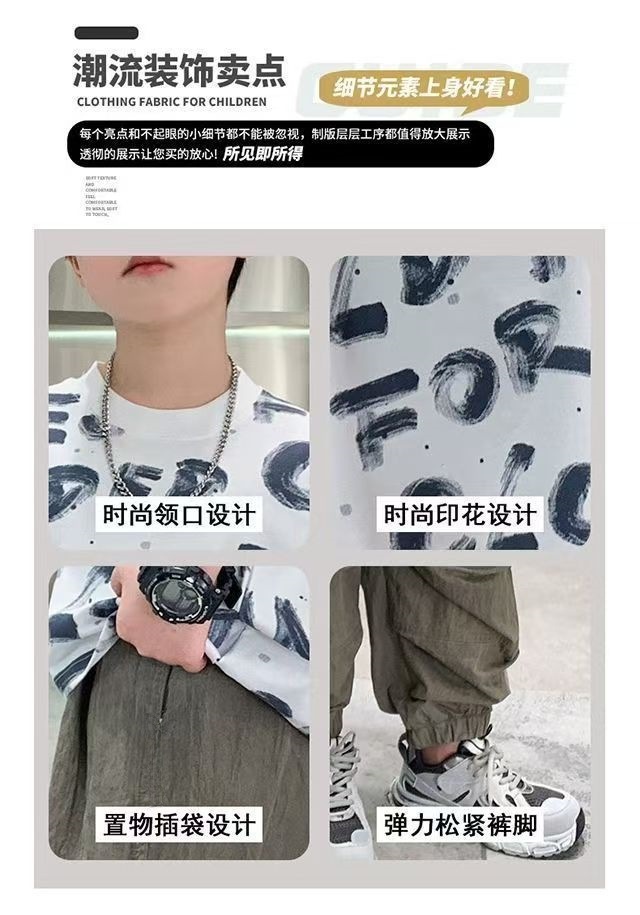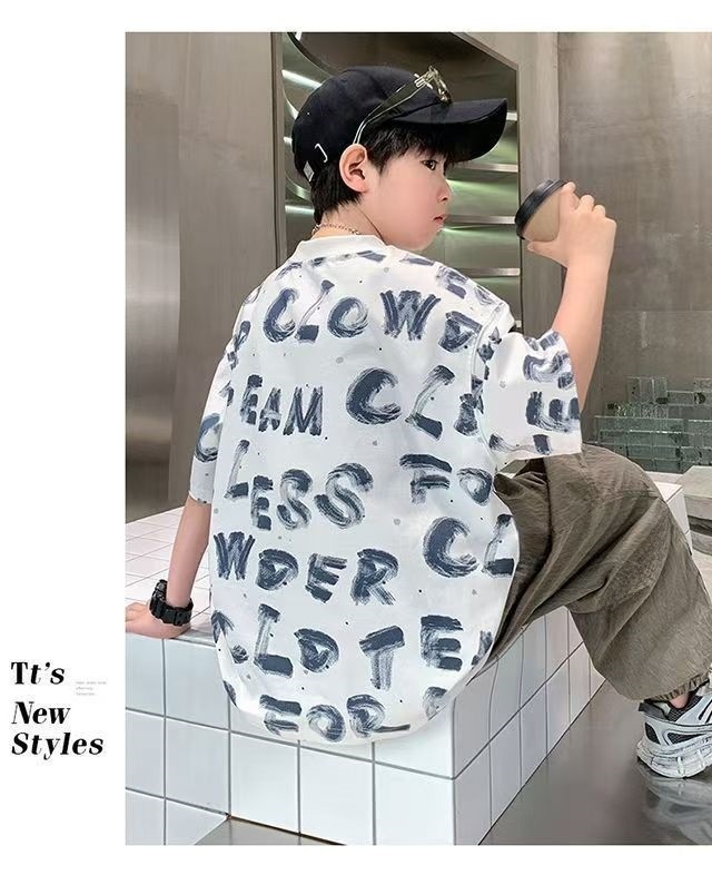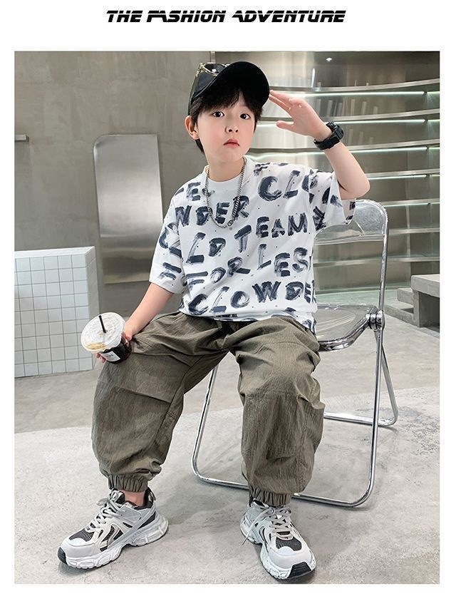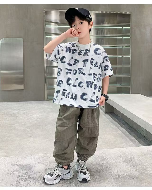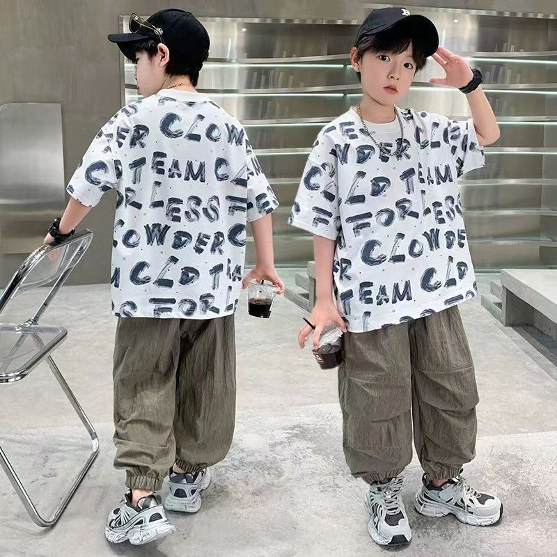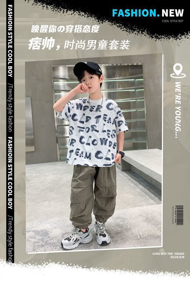 소년 여름 원피스 세트 2025 새로운 인터넷 인기있는 여름 어린이 여름 반팔 양팔 유행 세트
