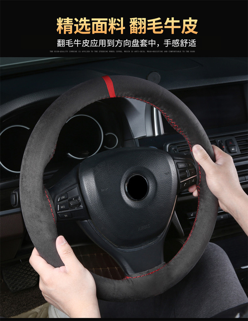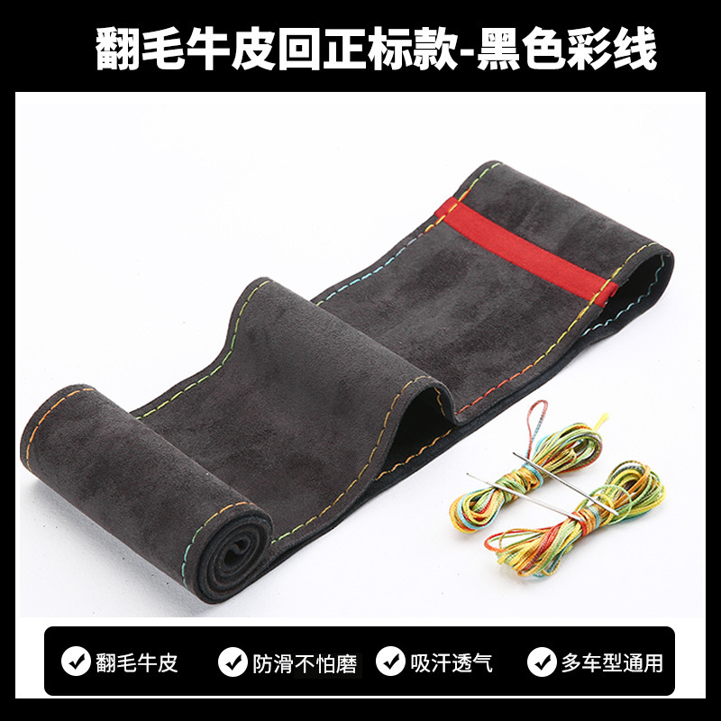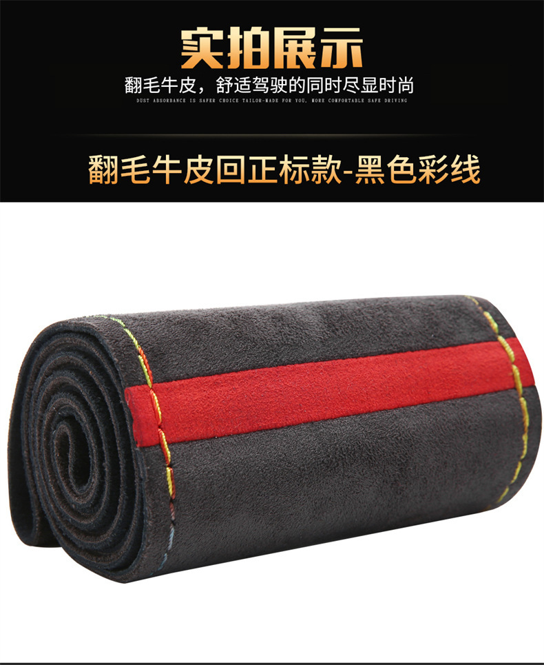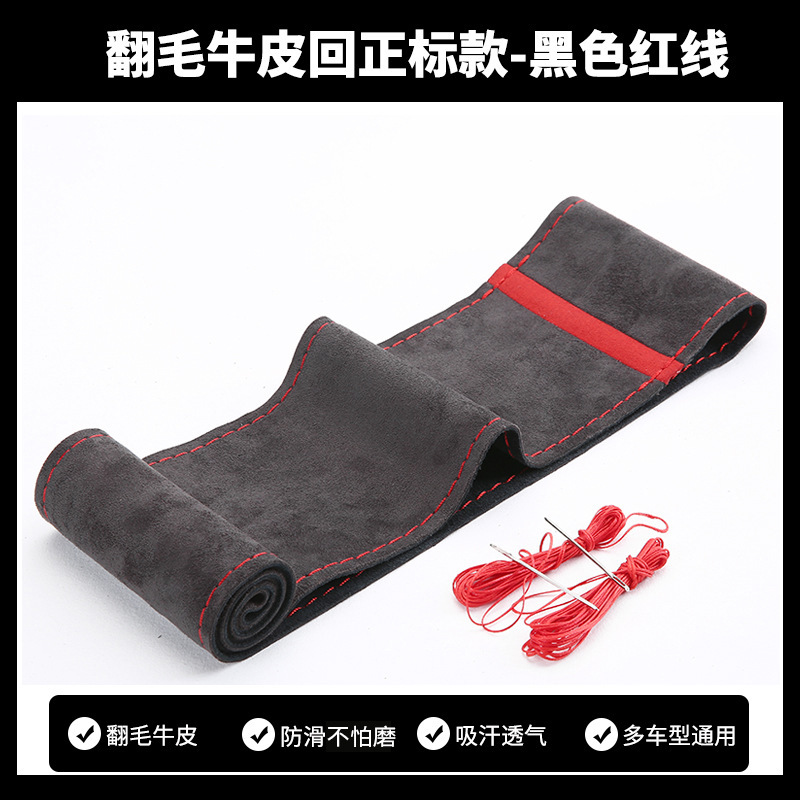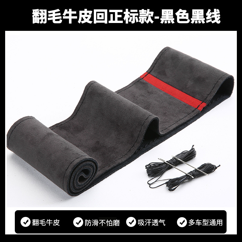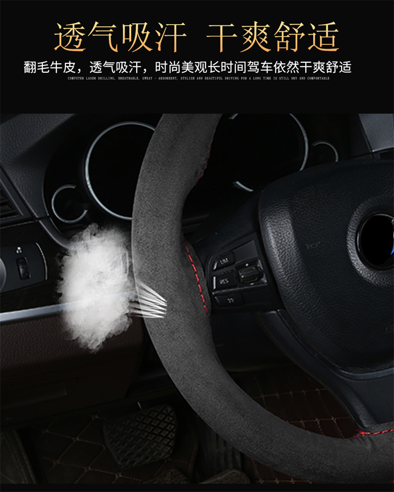 스웨이드 소가죽, 핸드 스티치 스티어링 휠 커버, 사계절 사용 가능한 범용 천연 소가죽 자동차 핸들 커버