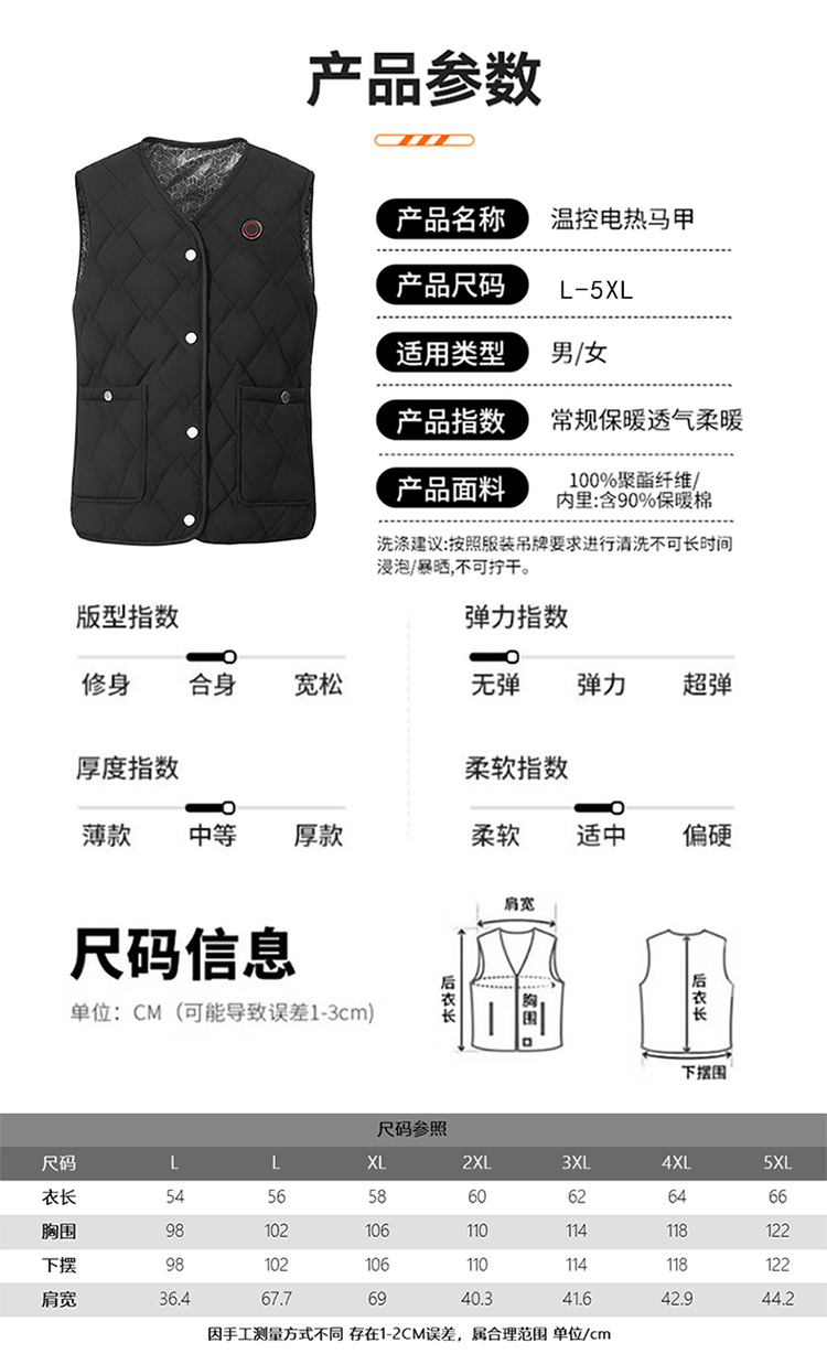 25년 새로운 스마트 발열복, 가볍고 얇은 발열조끼, 24존 원형 제어, 남녀공용 다용도 루즈한 대형 조끼