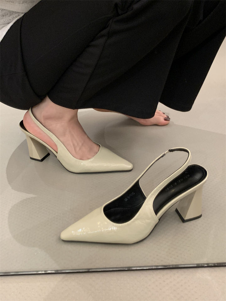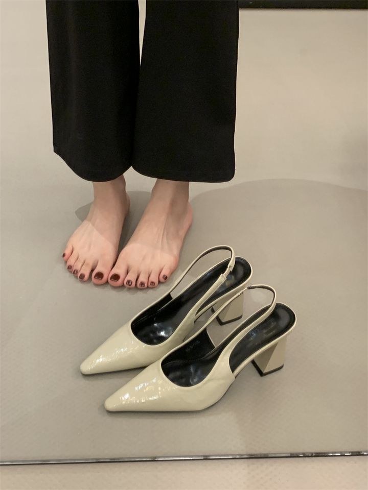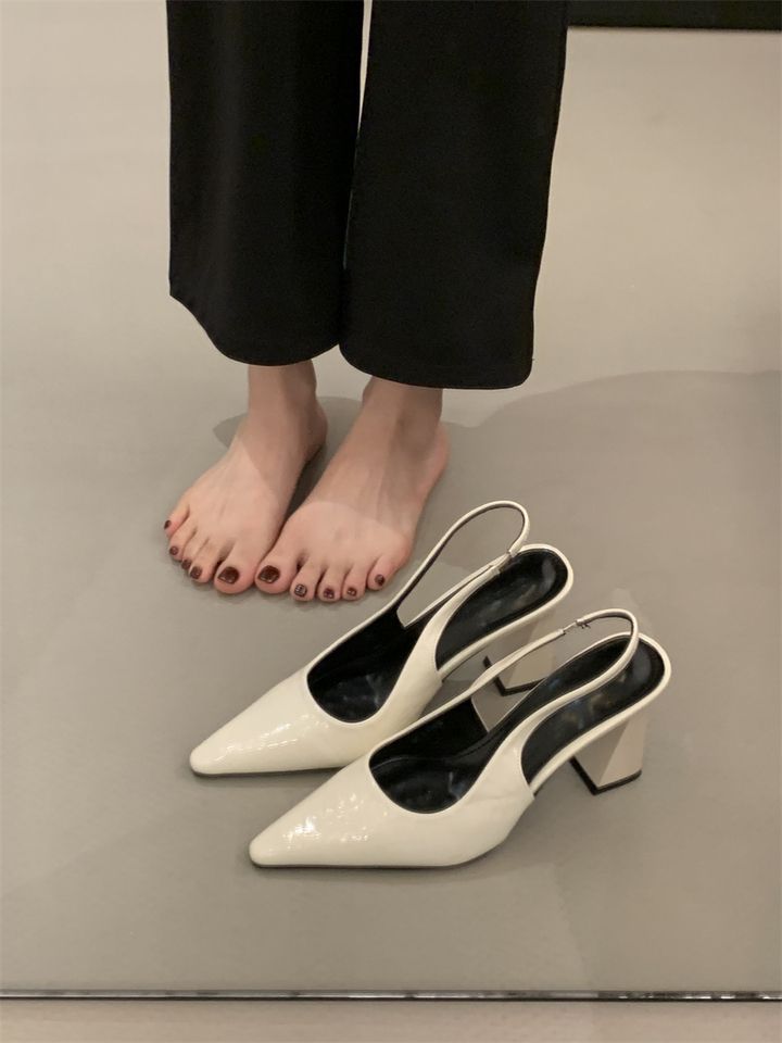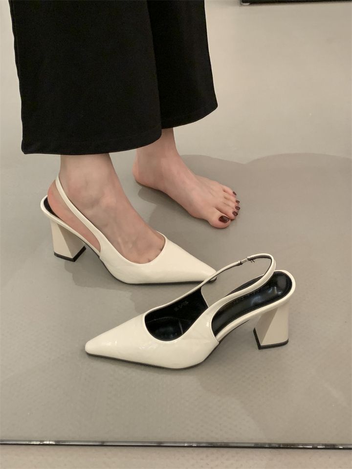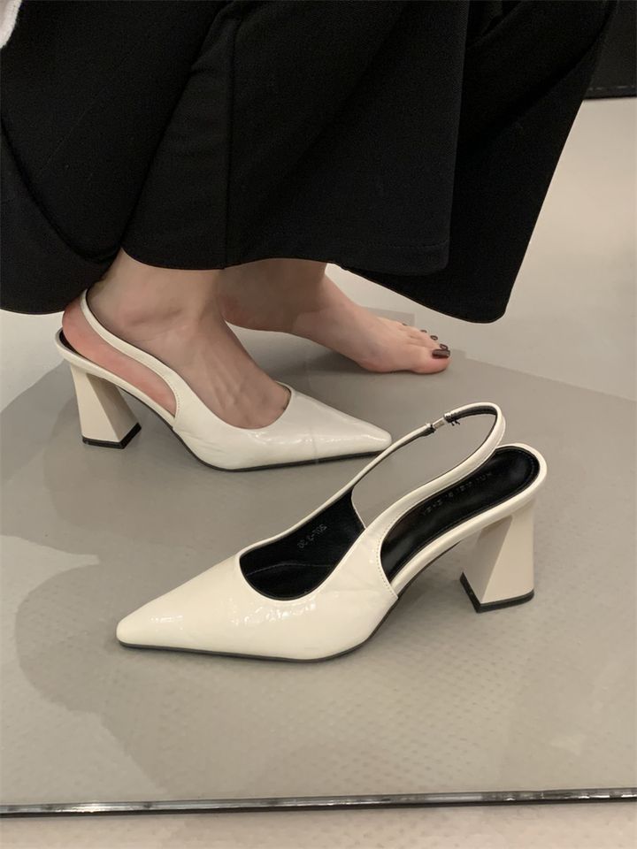 2025 신상 봄 여름 프렌치 화이트 스커트 포인티드 토 하이힐 여성용 두꺼운 굽 싱글 슈즈 뒷굽 샌들스토어 가기