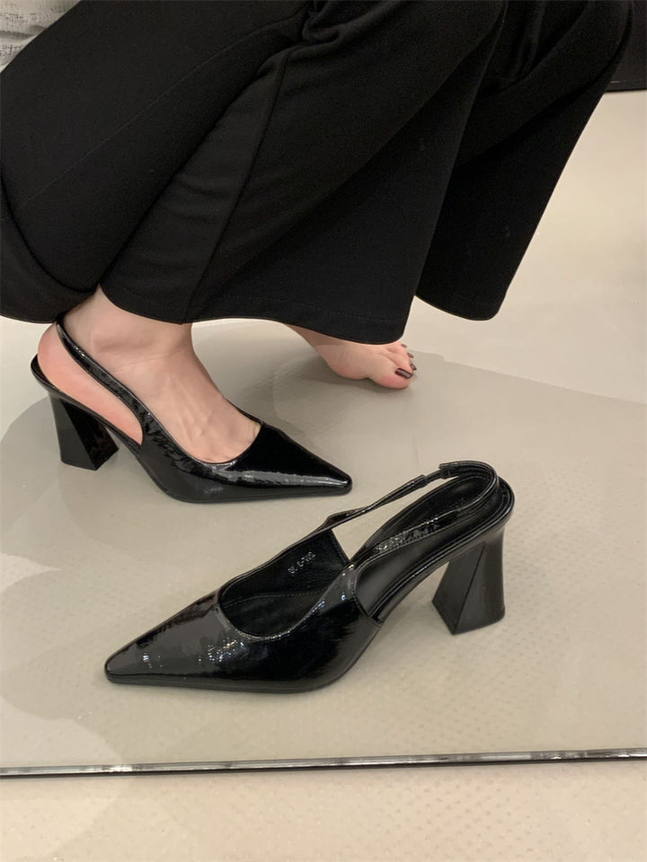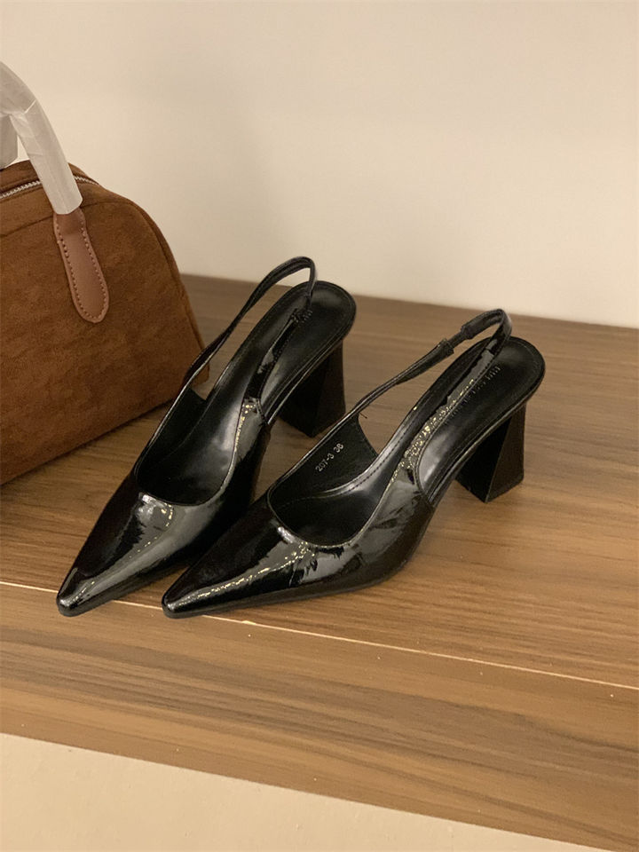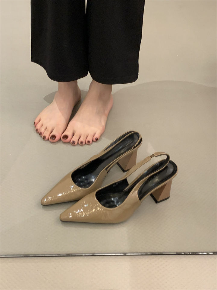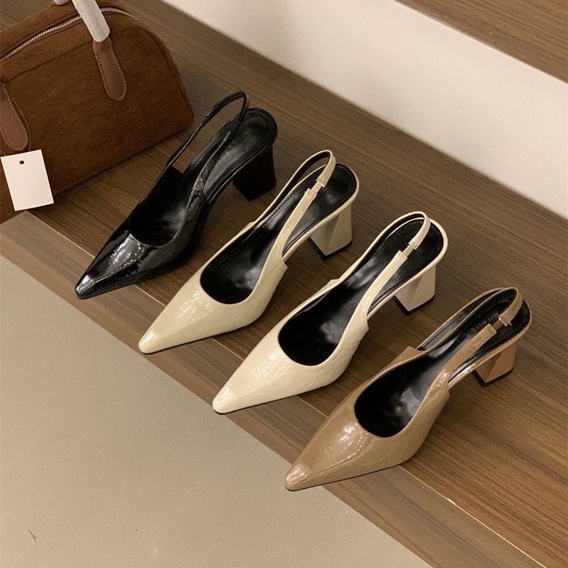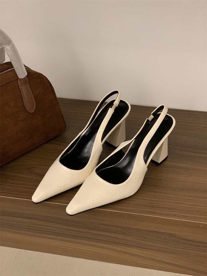 2025 신상 봄 여름 프렌치 화이트 스커트 포인티드 토 하이힐 여성용 두꺼운 굽 싱글 슈즈 뒷굽 샌들스토어 가기