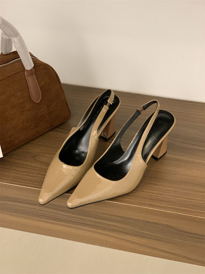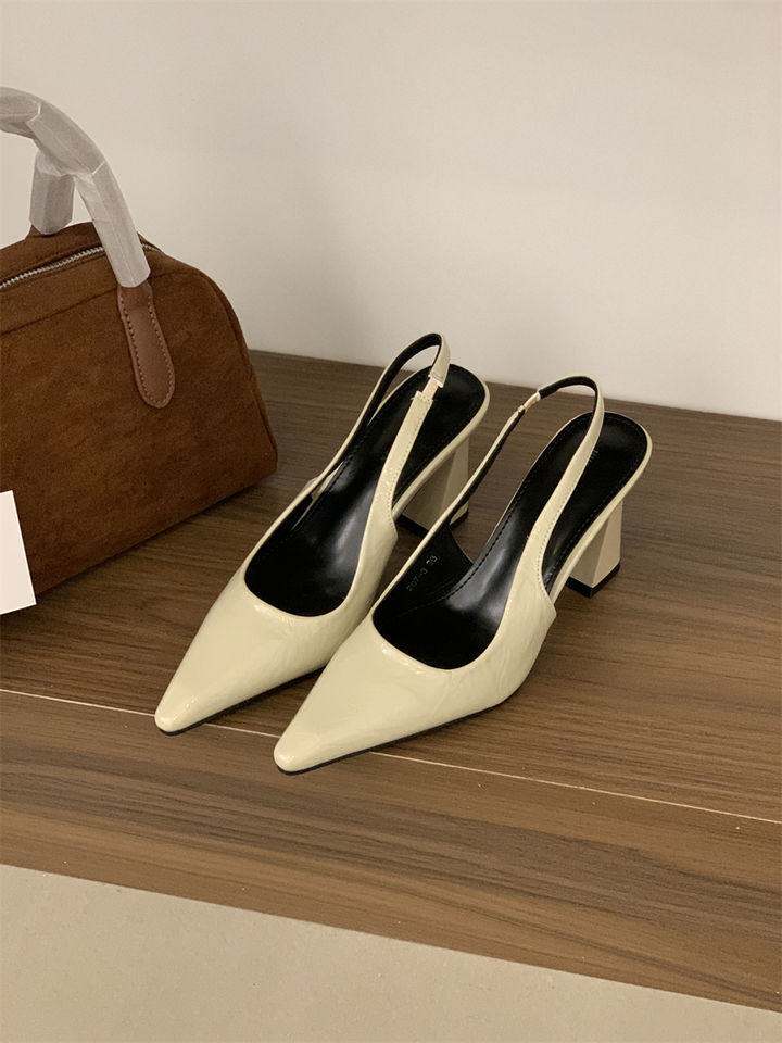 2025 신상 봄 여름 프렌치 화이트 스커트 포인티드 토 하이힐 여성용 두꺼운 굽 싱글 슈즈 뒷굽 샌들