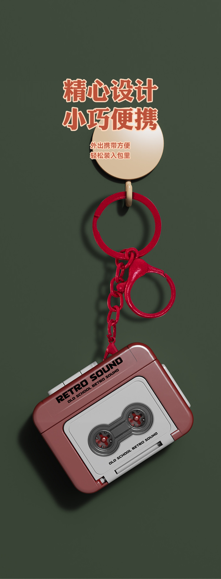 레트로 크리에이티브 테이프 플레이어 펜던트 어린이 장난감 녹음 제이 음악 레코드 노래 키 체인