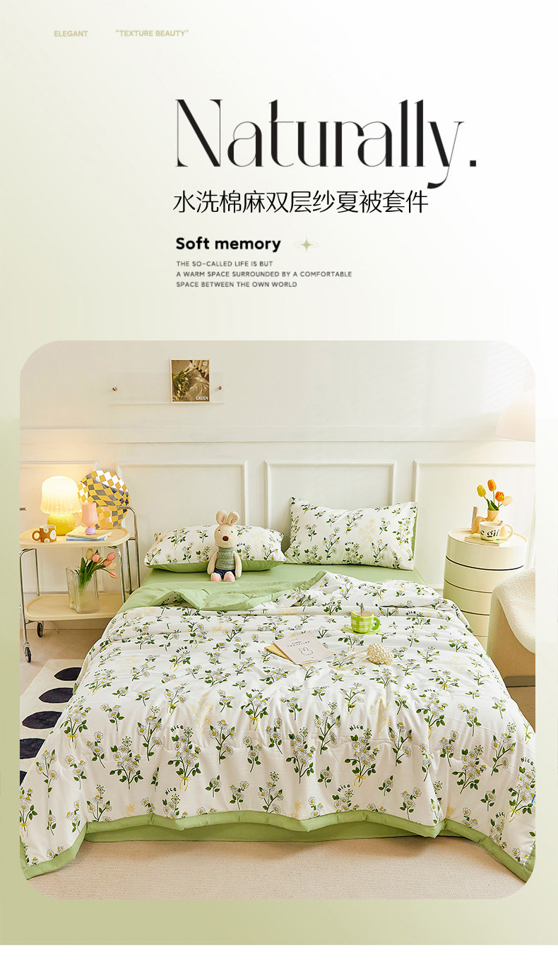 씻은 면과 린넨 여름 이불 여름 시원한 이불 어린이 기숙사 싱글 및 더블 머신 세탁기 에어컨 이불 세트스토어 가기