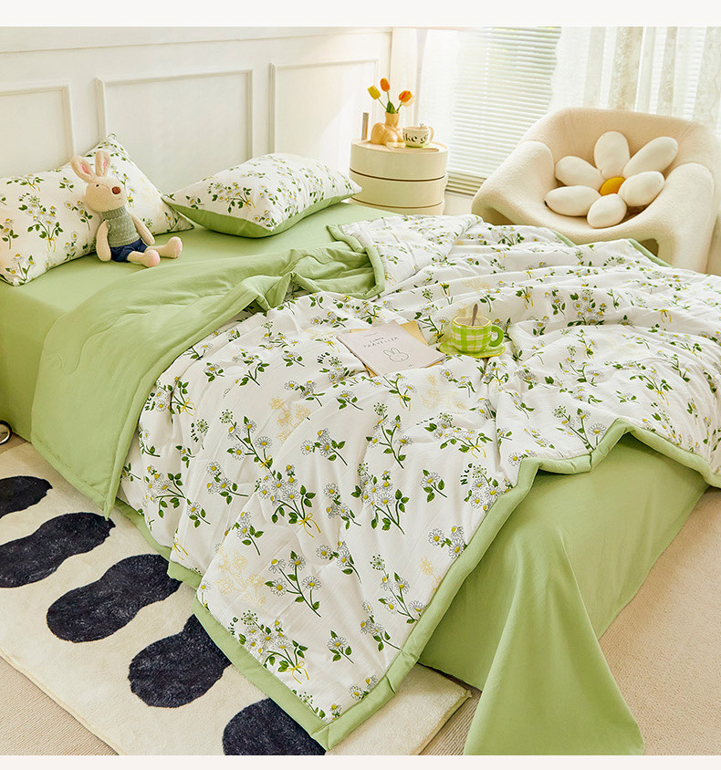 씻은 면과 린넨 여름 이불 여름 시원한 이불 어린이 기숙사 싱글 및 더블 머신 세탁기 에어컨 이불 세트