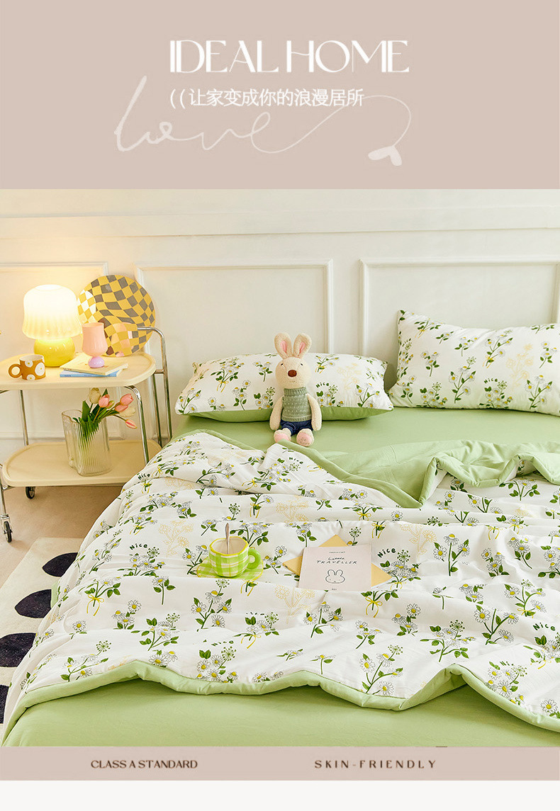 • 1.5m 침대 시트 4종 세트#클린#150x200cm 여름 이불 + 200*230cm 침대 시트 + 베갯잇 2개