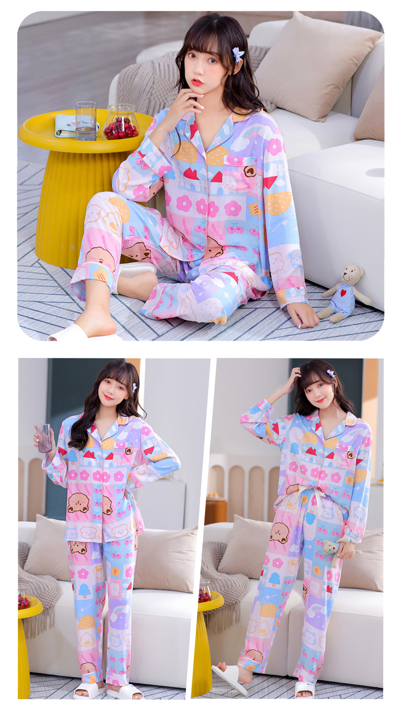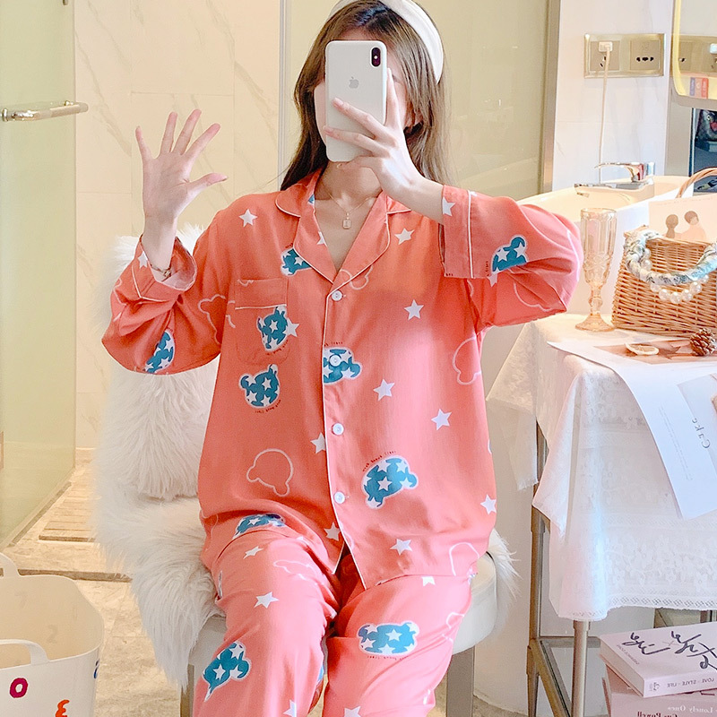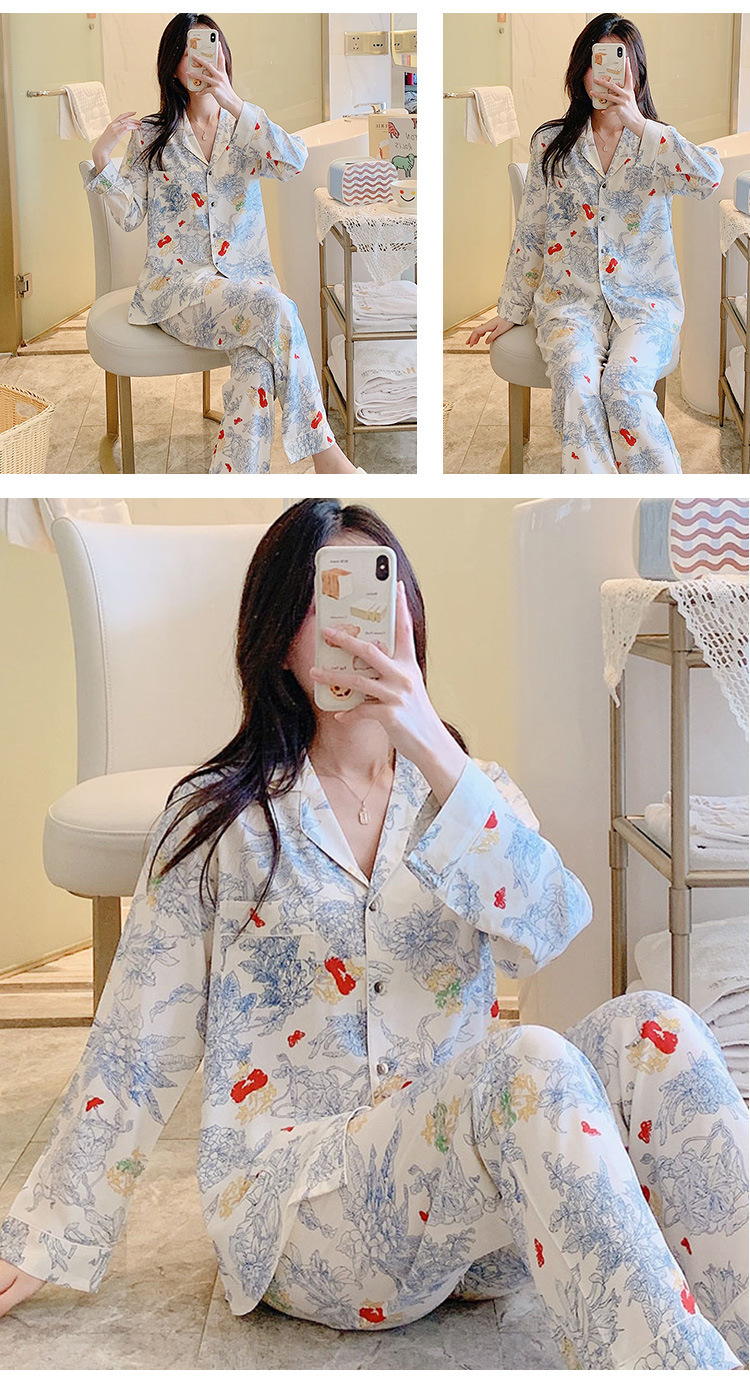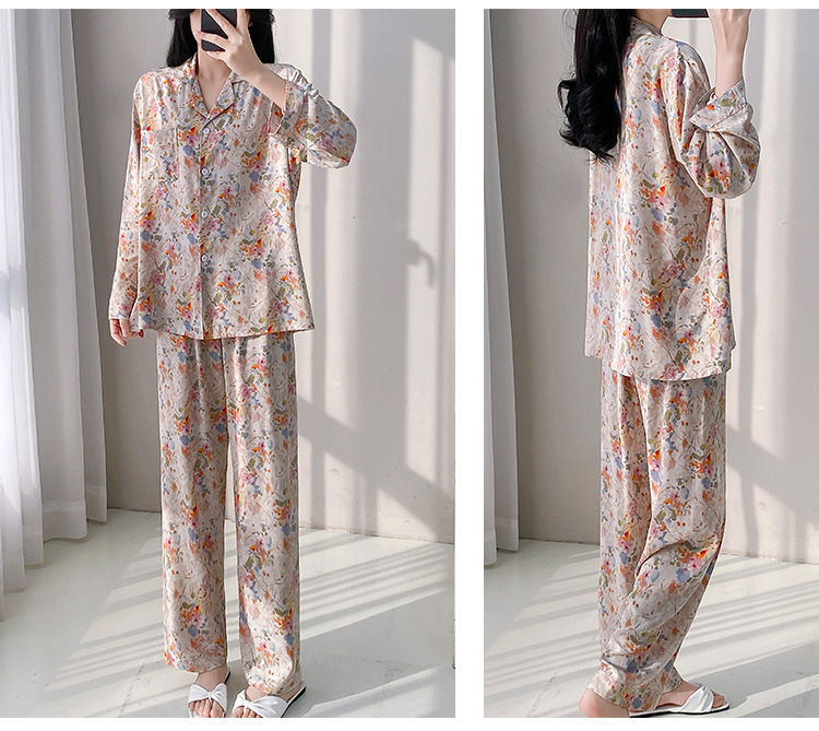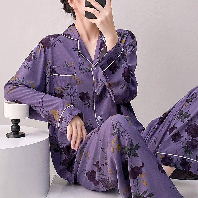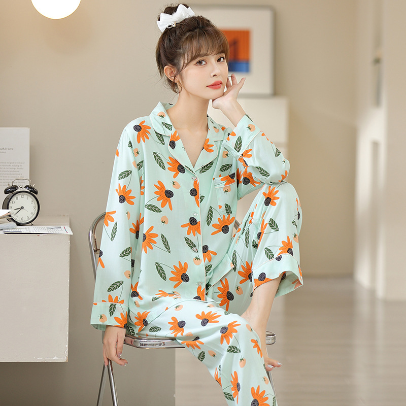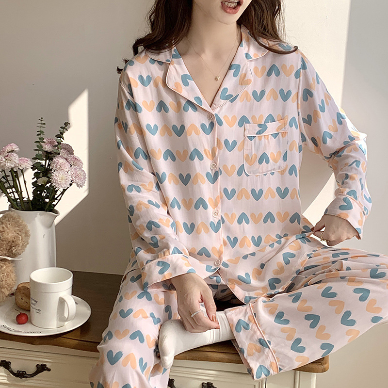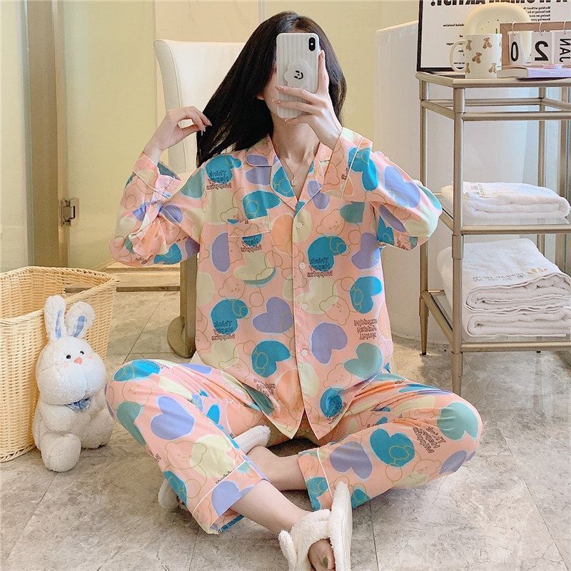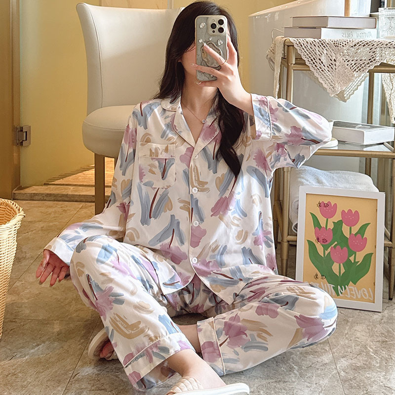 여성용 봄 여름 면 실크 긴팔 잠옷, 통기성, 땀 흡수성, 피부 친화적인, 얇은 면 실크 가정복, 루즈한 양복, 인공 면스토어 가기