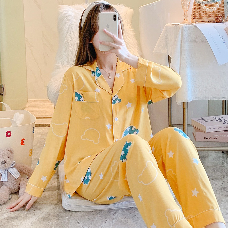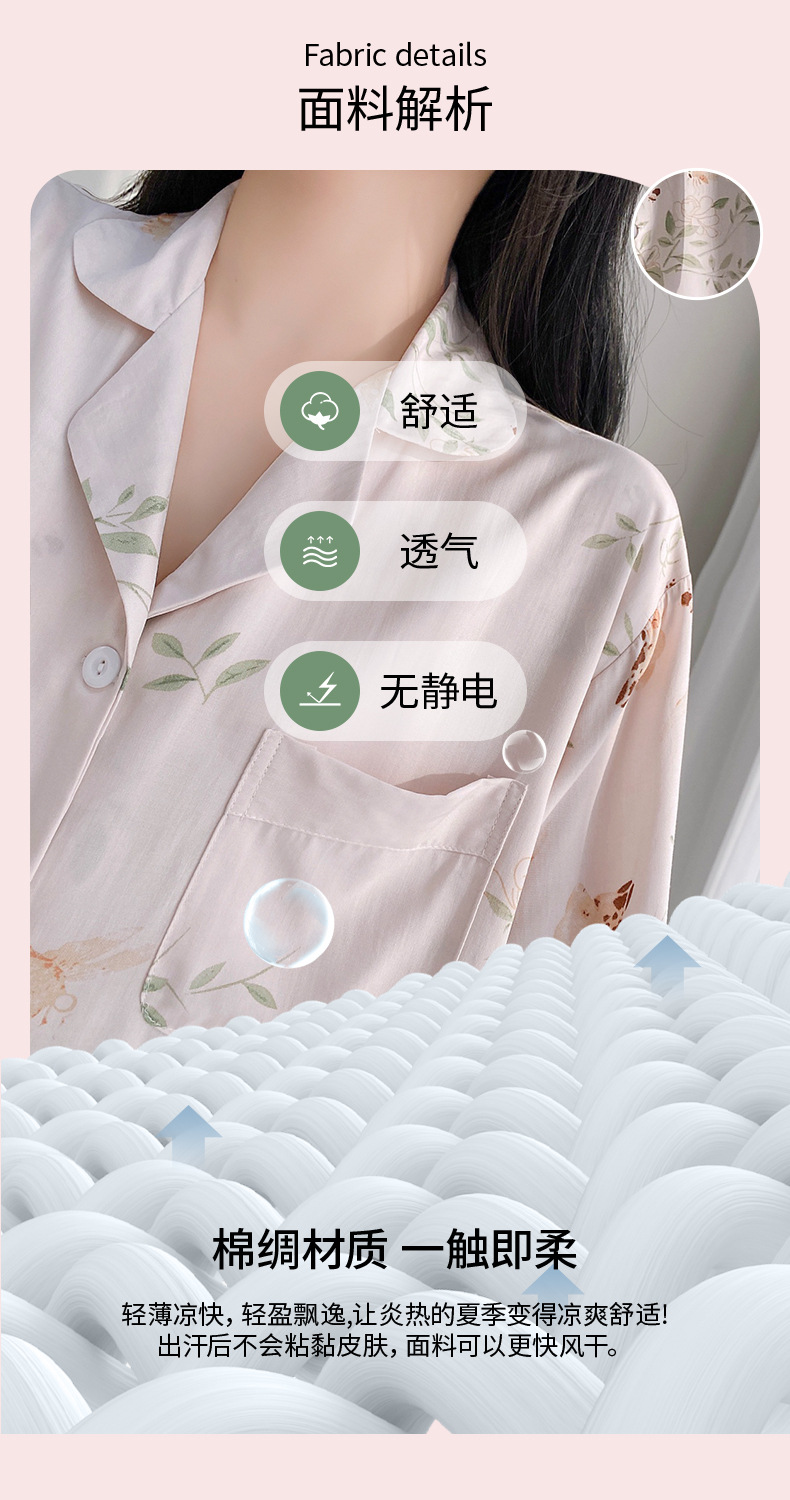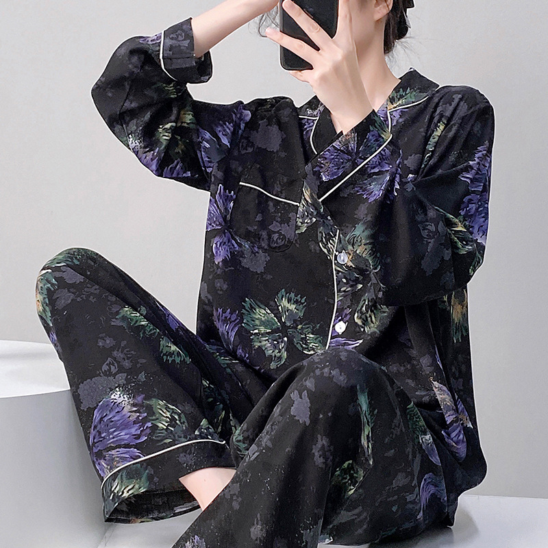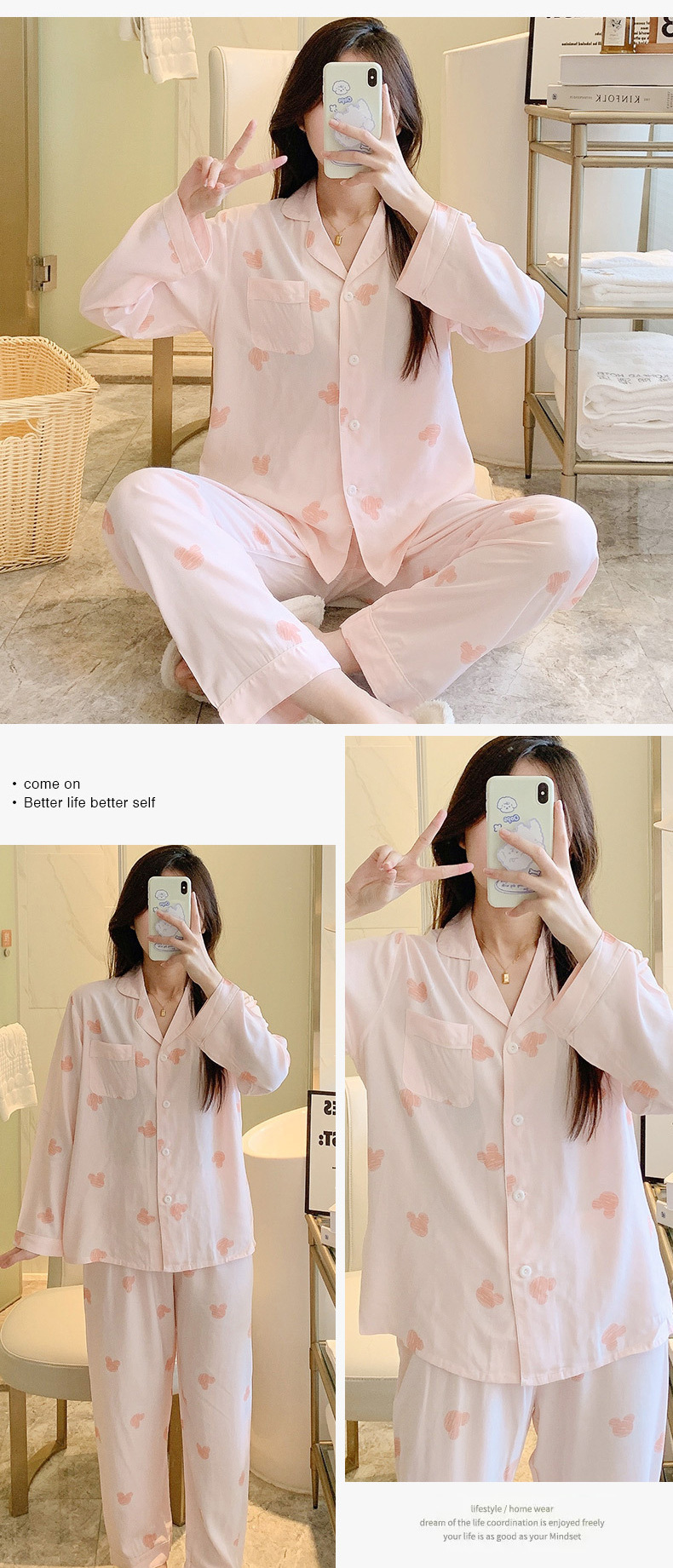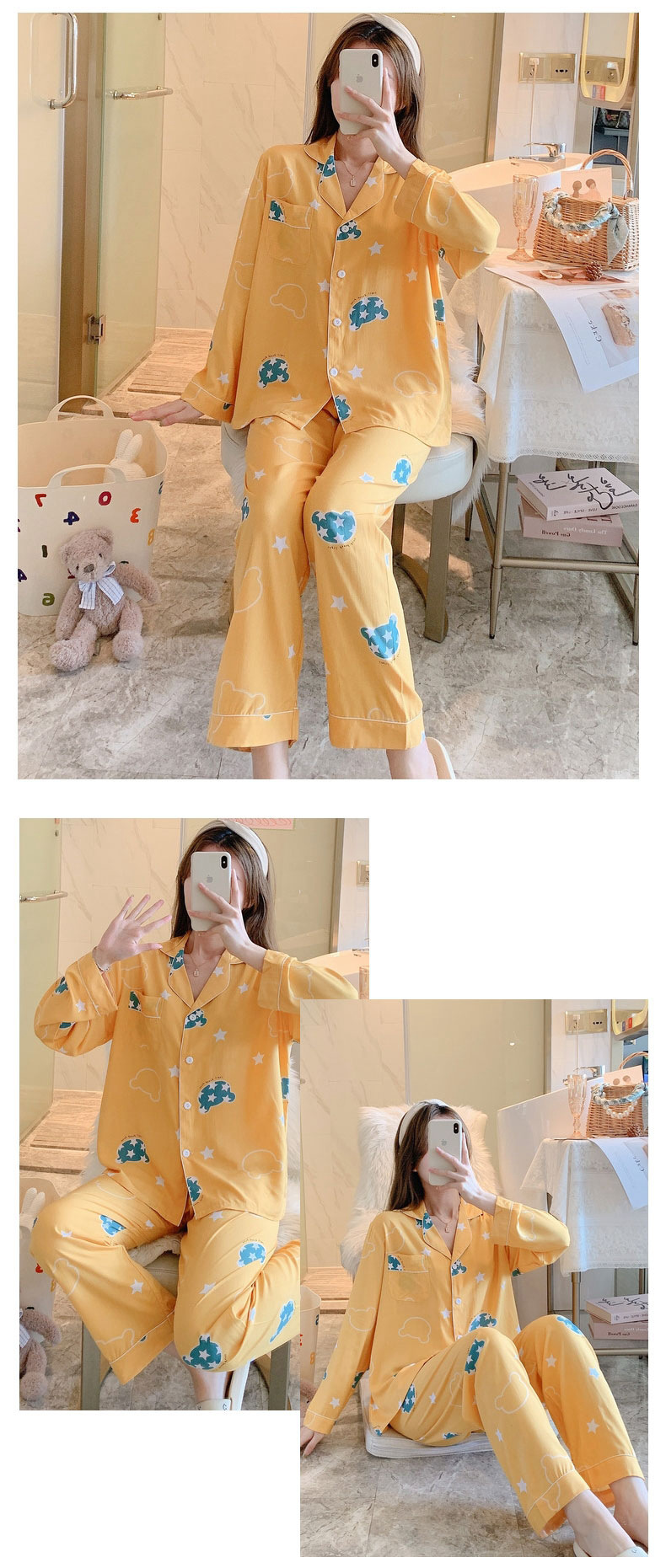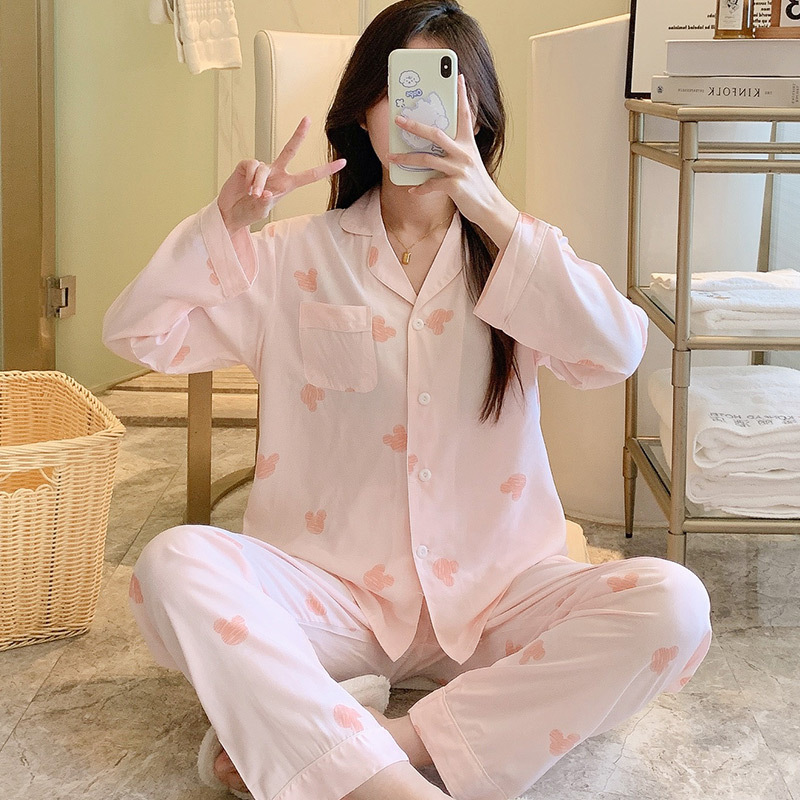 여성용 봄 여름 면 실크 긴팔 잠옷, 통기성, 땀 흡수성, 피부 친화적인, 얇은 면 실크 가정복, 루즈한 양복, 인공 면스토어 가기
