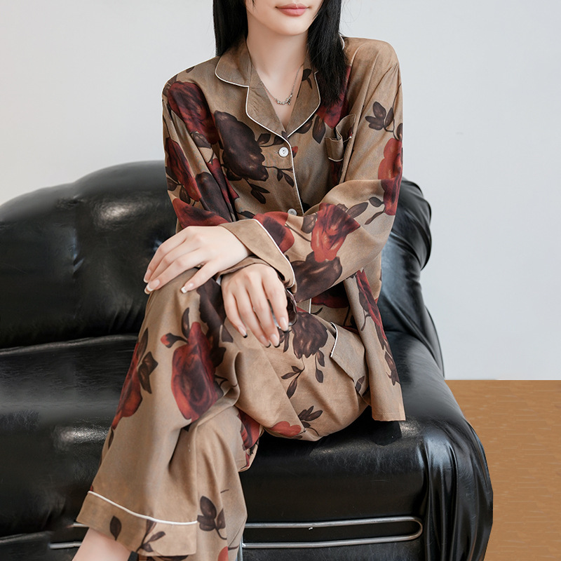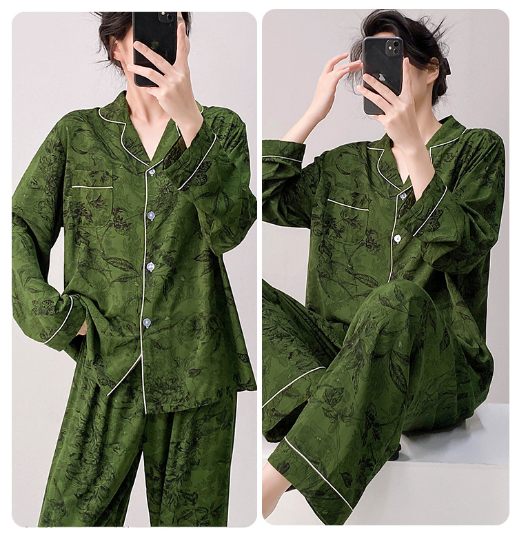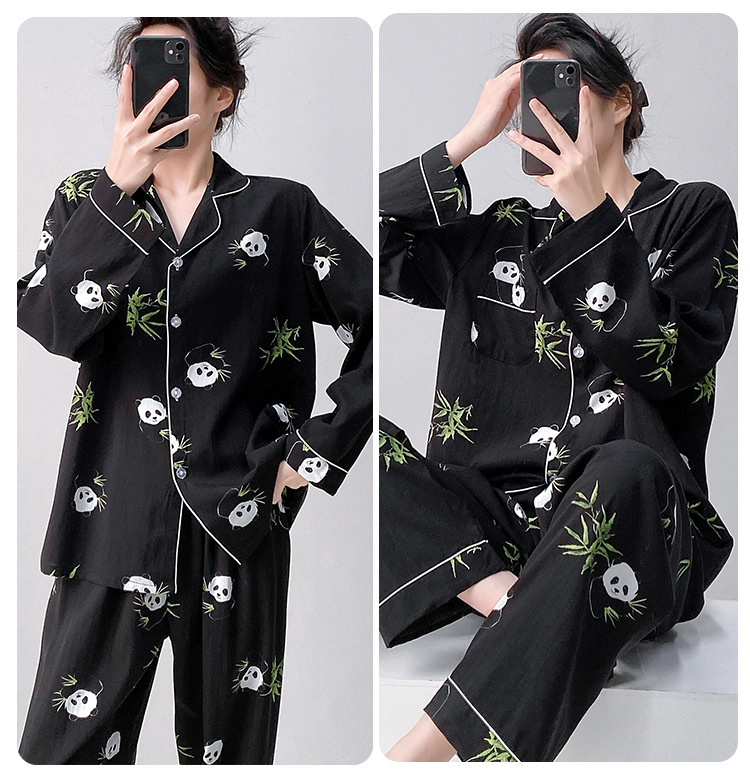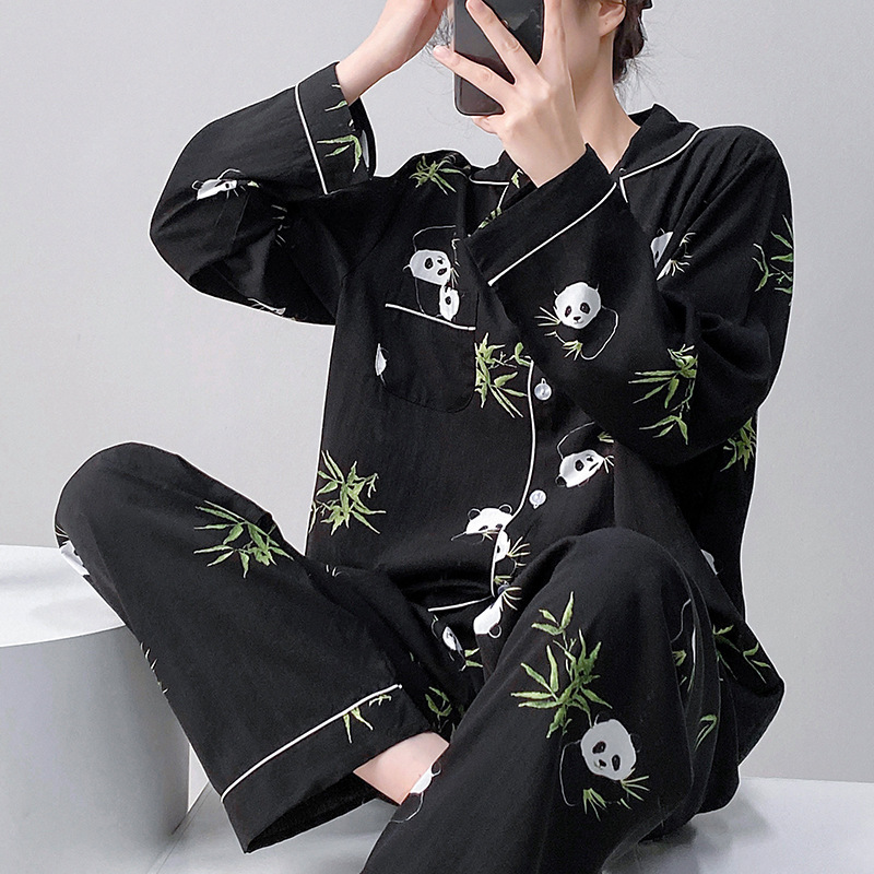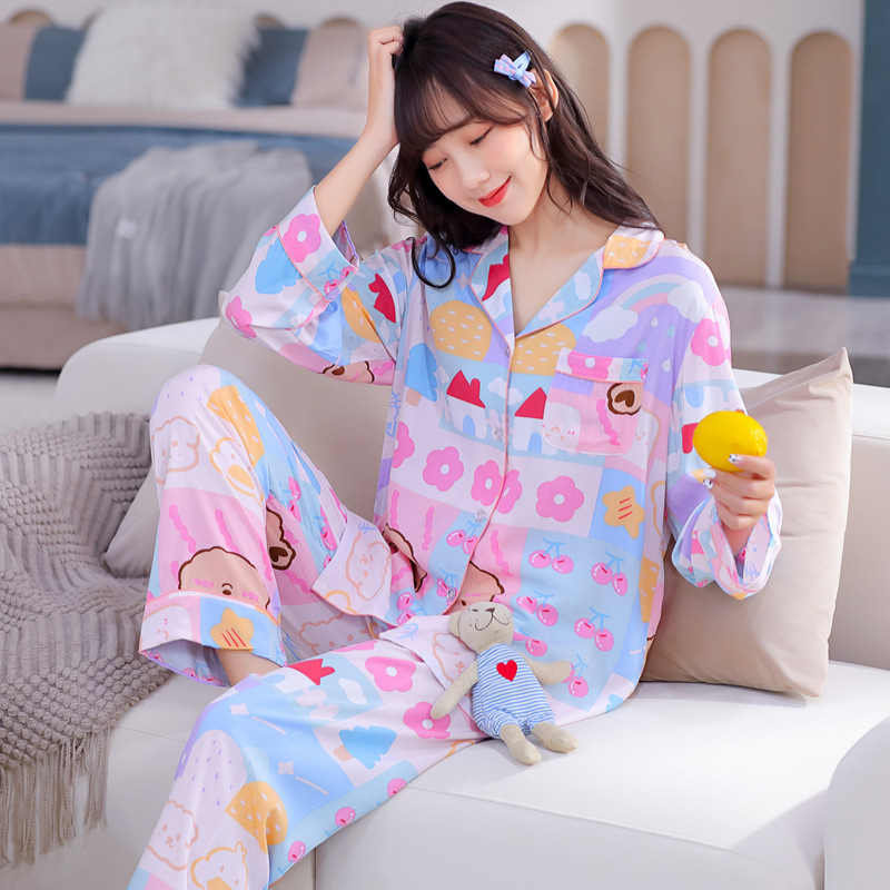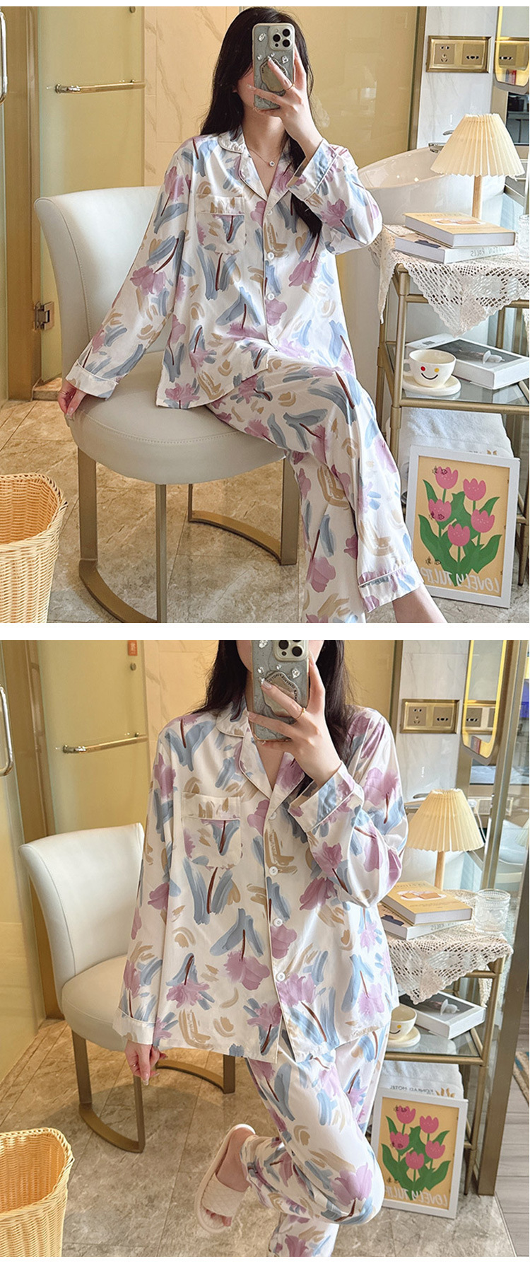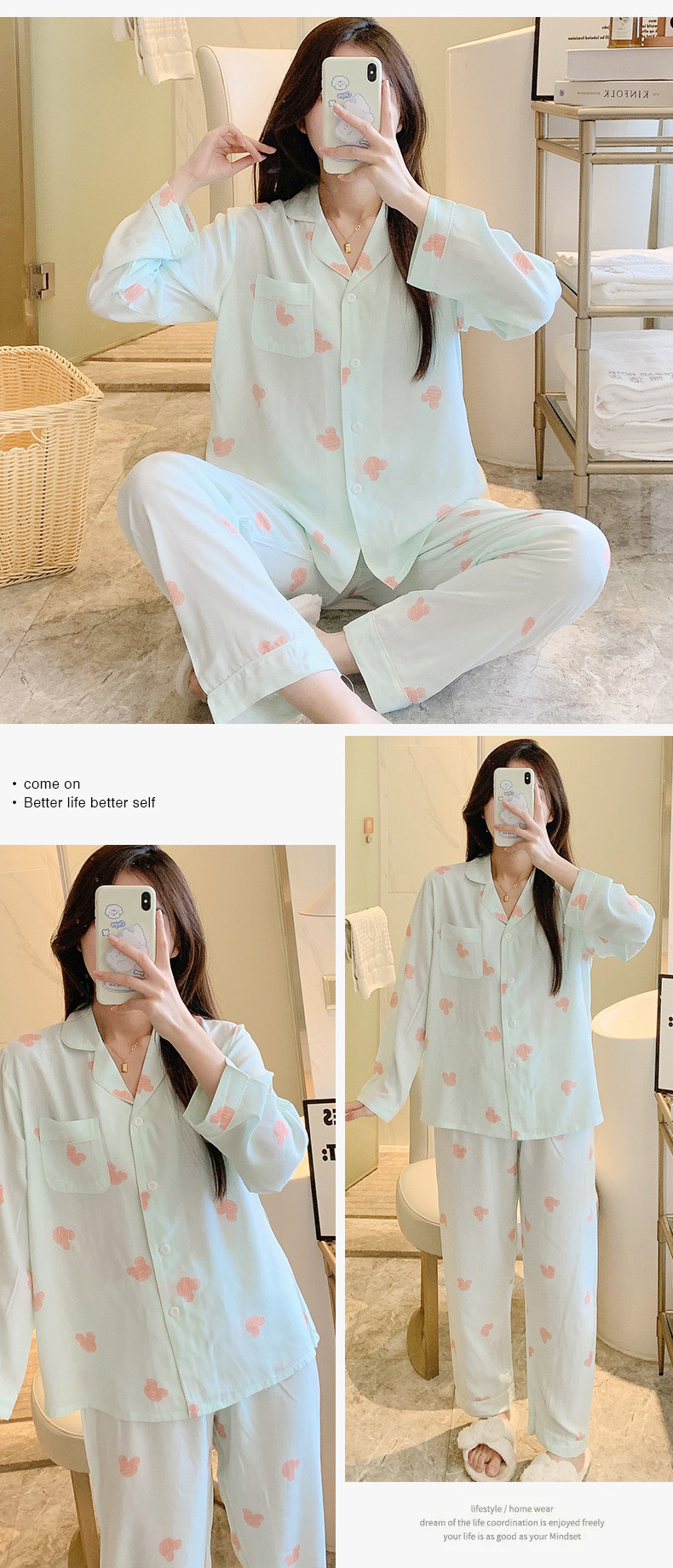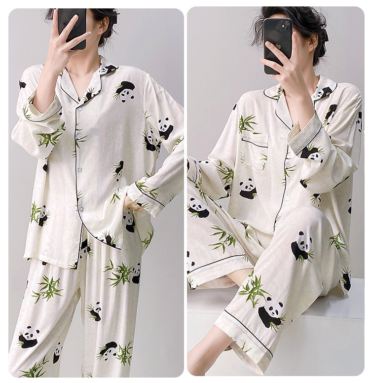 여성용 봄 여름 면 실크 긴팔 잠옷, 통기성, 땀 흡수성, 피부 친화적인, 얇은 면 실크 가정복, 루즈한 양복, 인공 면스토어 가기