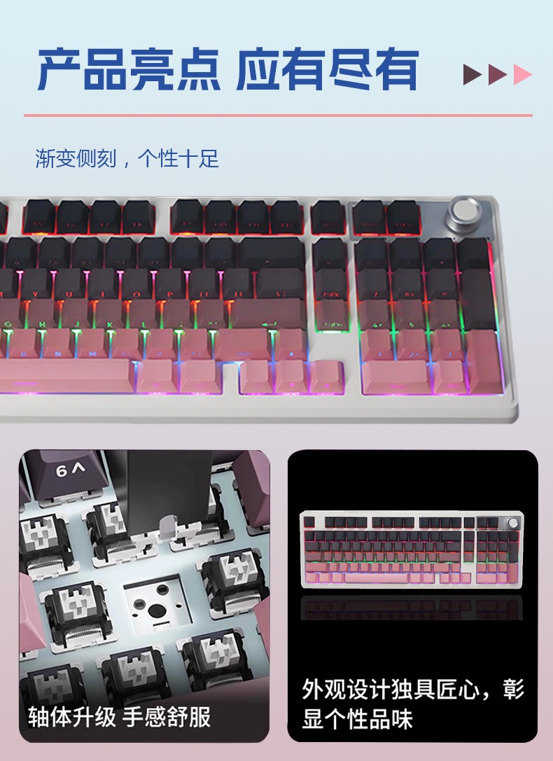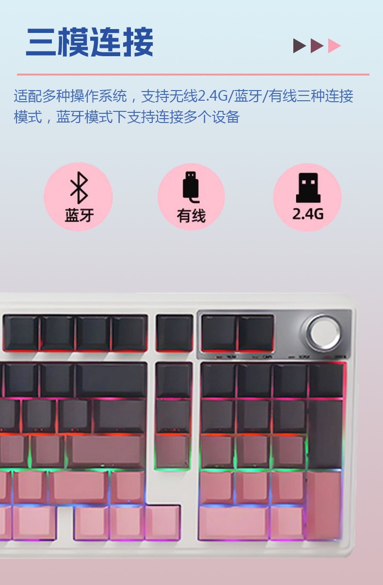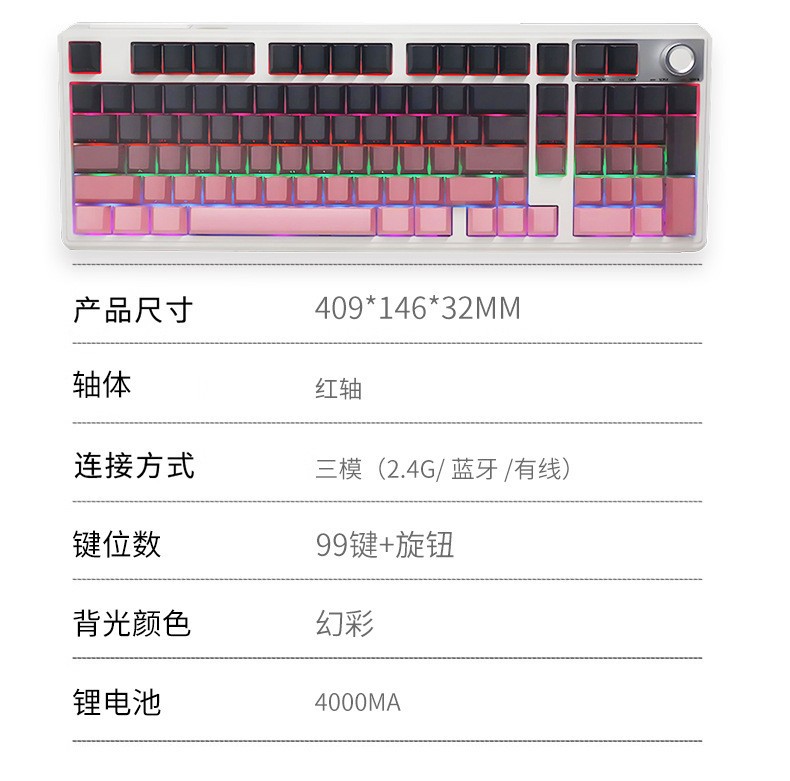 H102 기계식 키보드 3 모드 2.4G 전자 경쟁 사무실 보편적 인 높은 색상 가치 측면 새겨진 붉은 축 맞춤형 다채로운 키보드