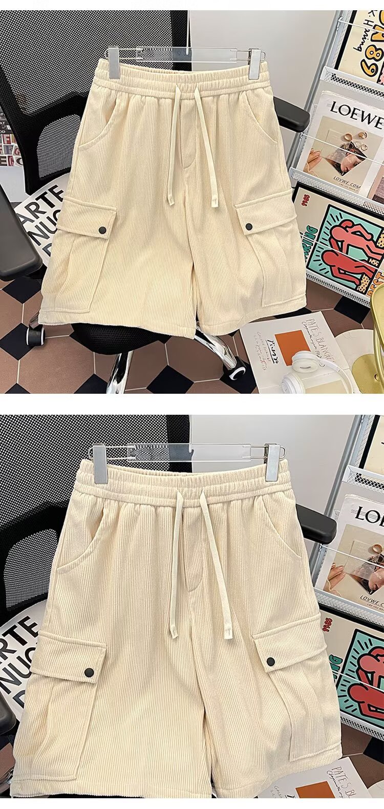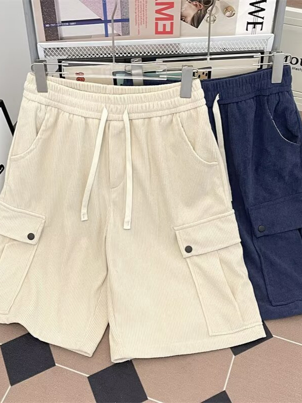 일본 복고풍 여름 코듀로이 멀티 포켓 카고 반바지 남성 트렌디 하이 스트리트 루즈 스트레이트 캐주얼 5부 바지스토어 가기