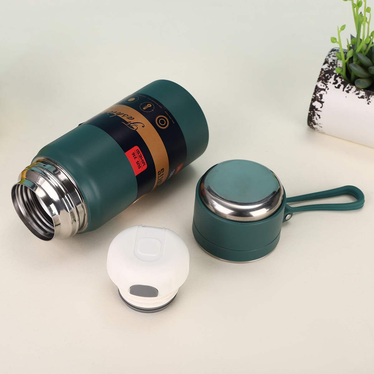 새로운 316 스테인레스 스틸 보온병 컵, 휴대용 로프, 등산 여행 스포츠 포트, 간단한 대용량 티컵