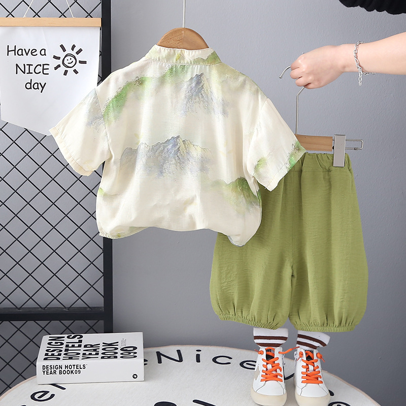 소년 한푸 세트 여름 의류 어린이 새 중국 여름 민족 의류 아기 1 세 원피스 어린이 국가 스타일 얇은 원피스