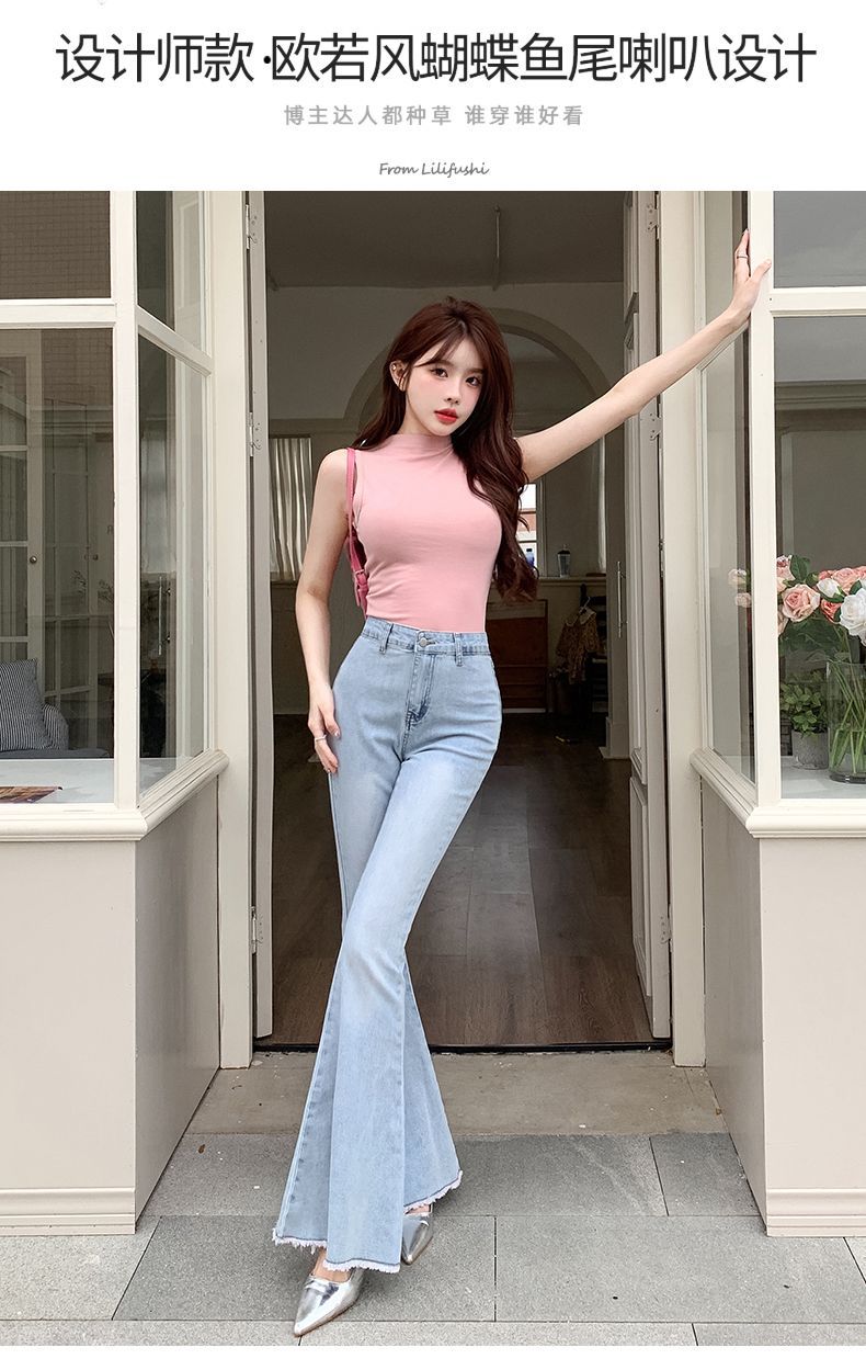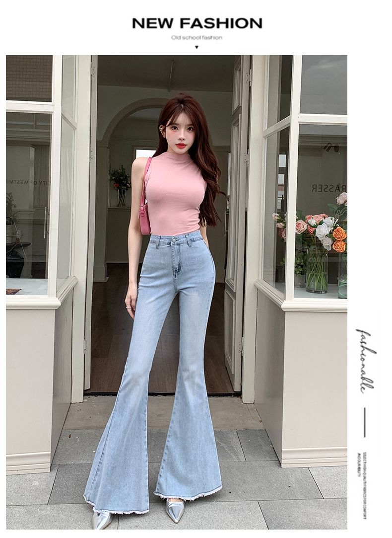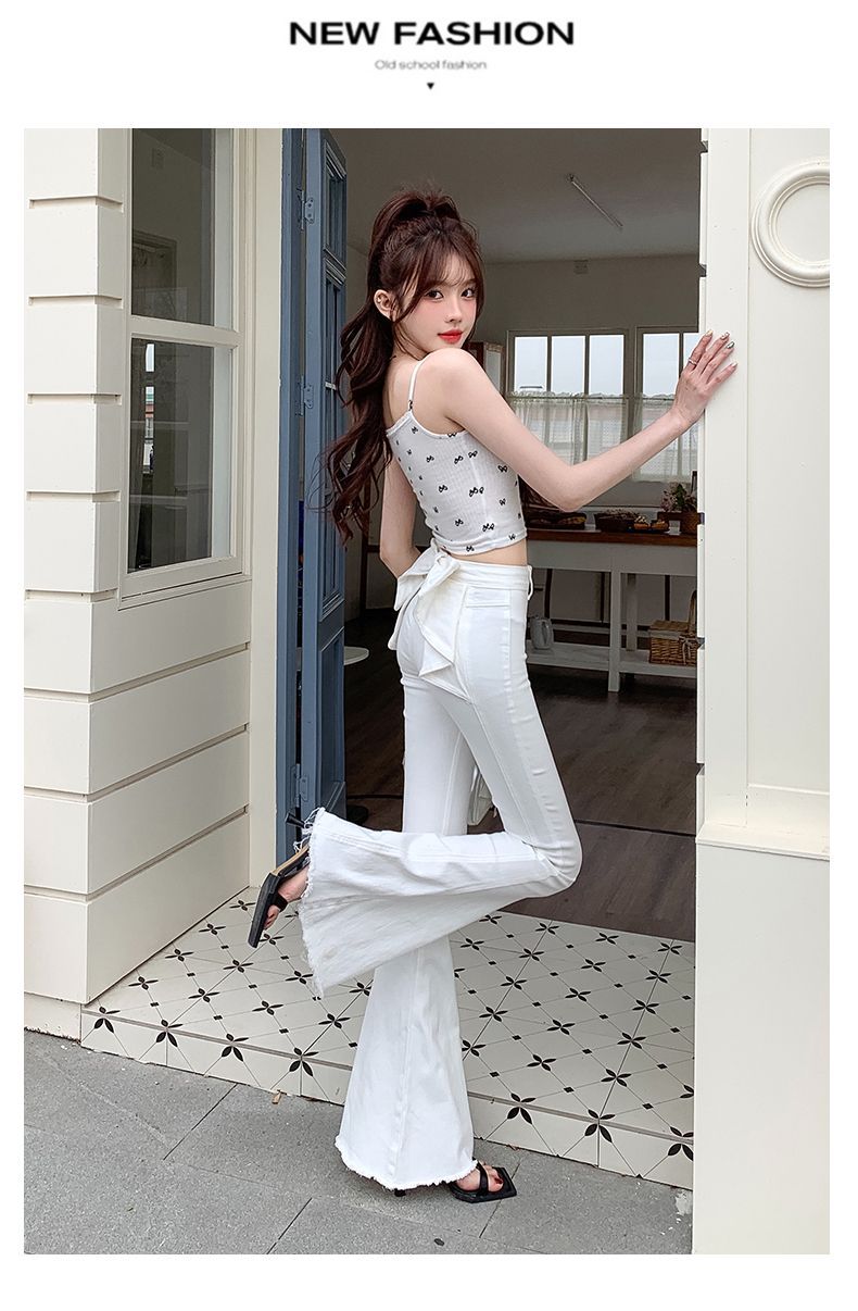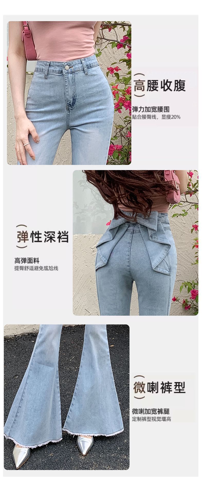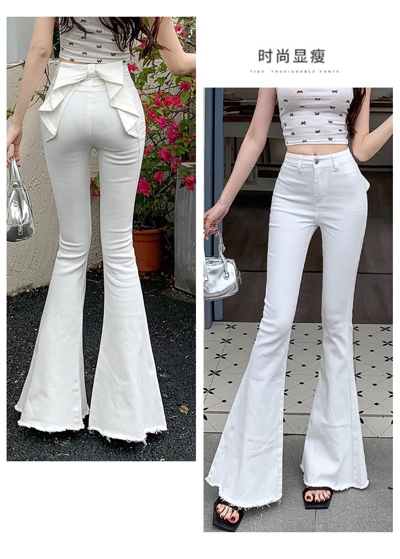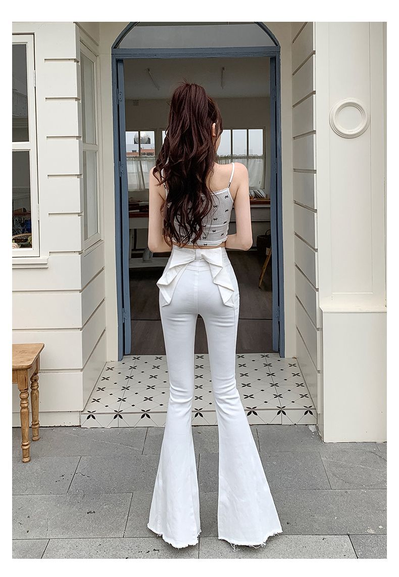 봄과 여름 2025 새로운 3 차원 활 청바지 여성 Ouruo 스타일 높은 허리 올 매치 슬림 핏 힙 트럼펫 바지스토어 가기