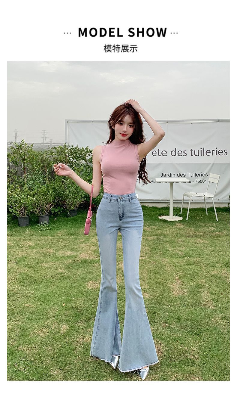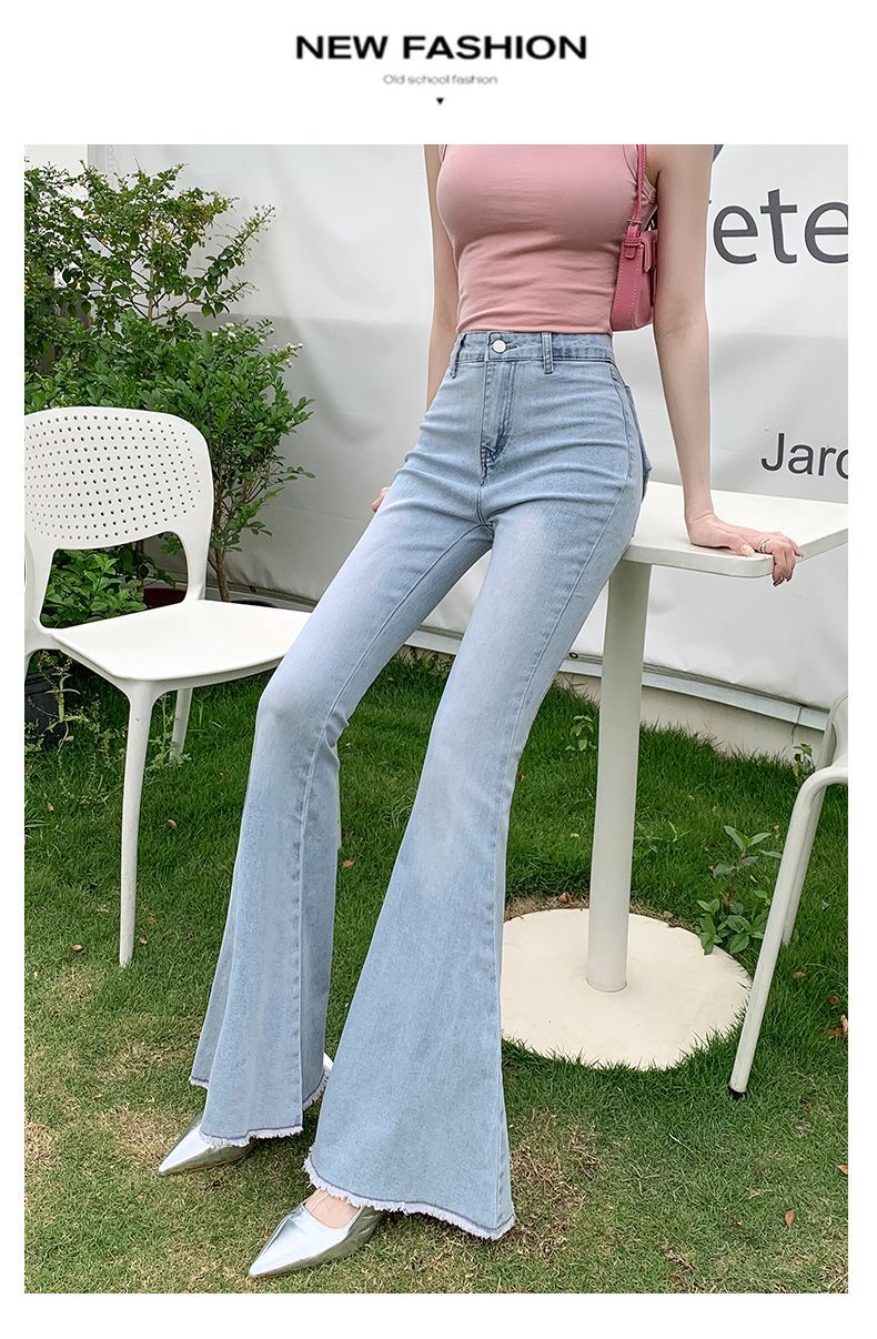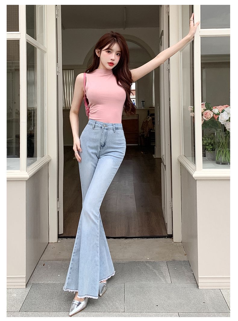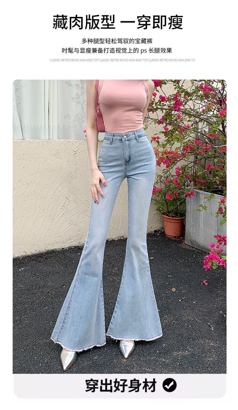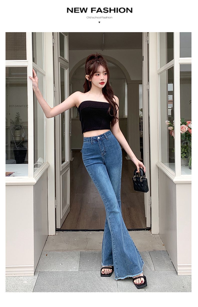 봄과 여름 2025 새로운 3 차원 활 청바지 여성 Ouruo 스타일 높은 허리 올 매치 슬림 핏 힙 트럼펫 바지스토어 가기