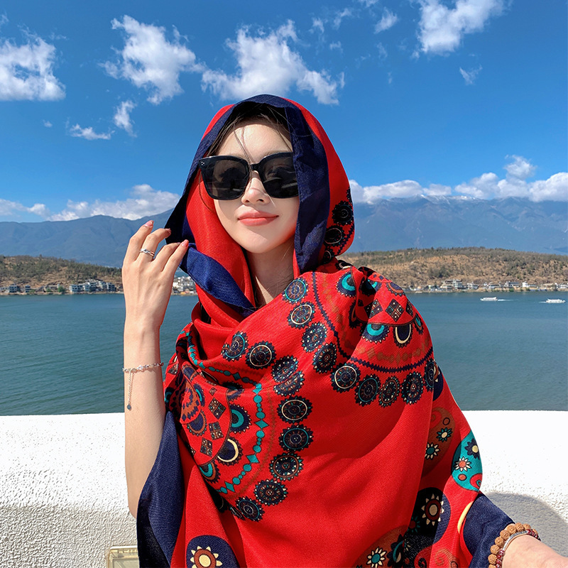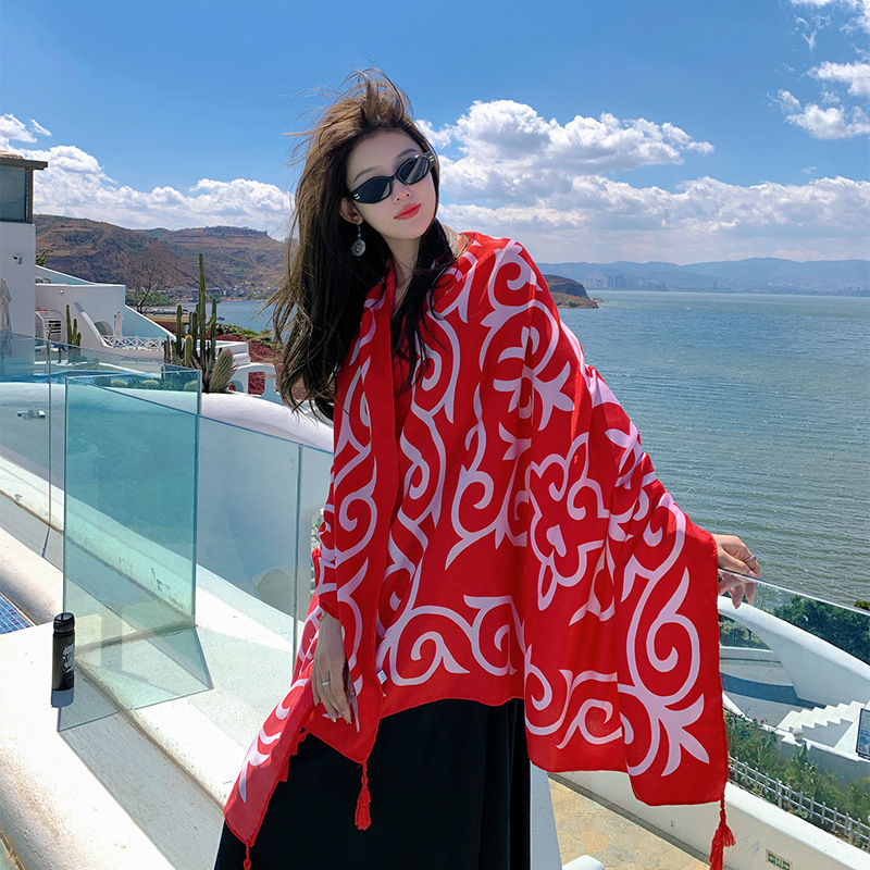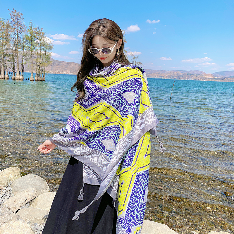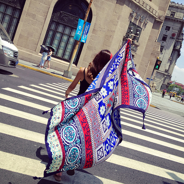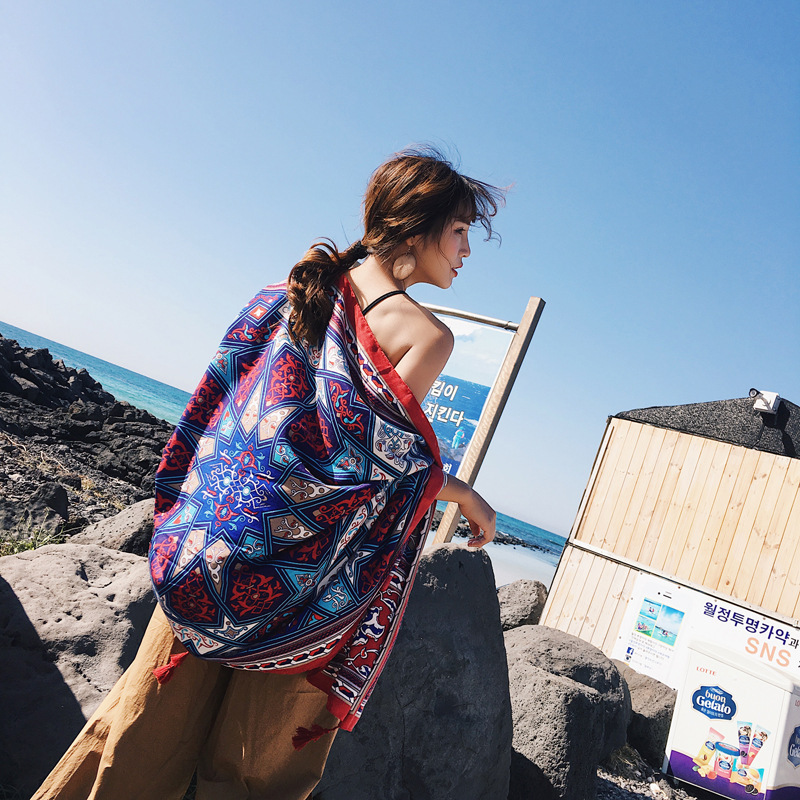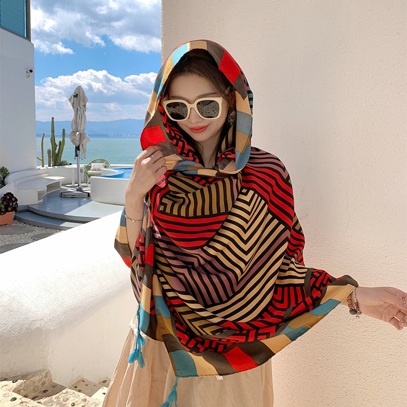 새로운 여름 면화 및 리넨 스카프 여행 스카프 선스크린 에어컨 대형 목도리 여성용 해변 수건 민족 스타일 스카프스토어 가기