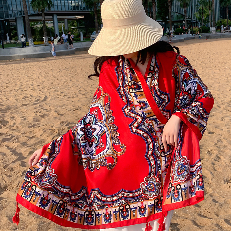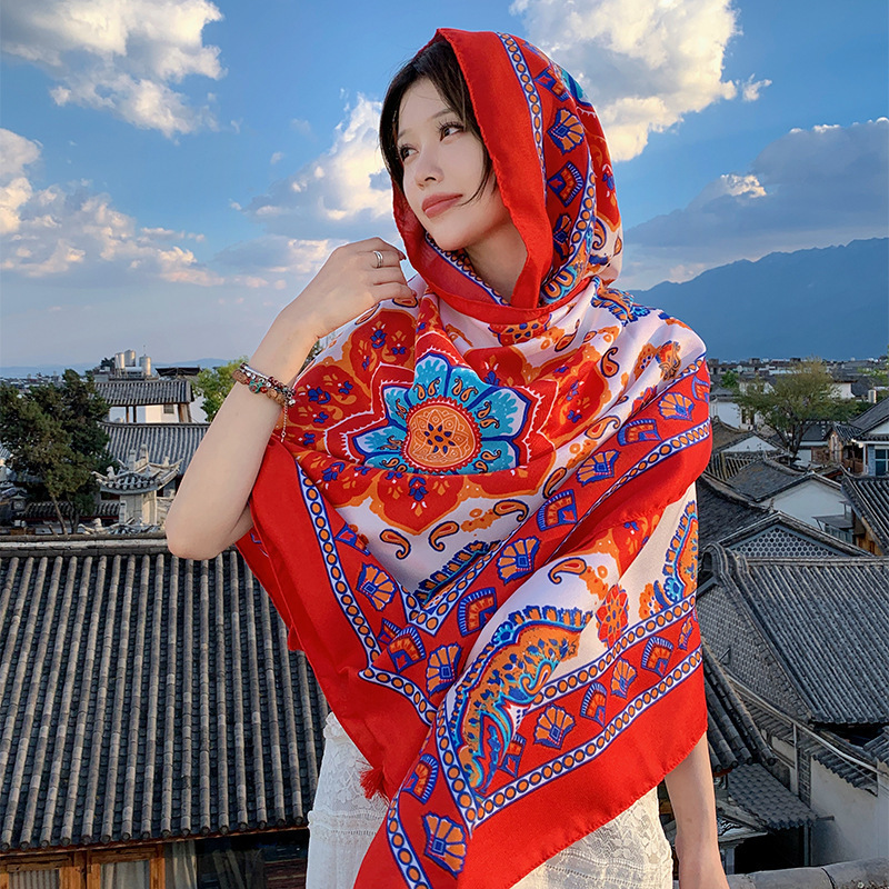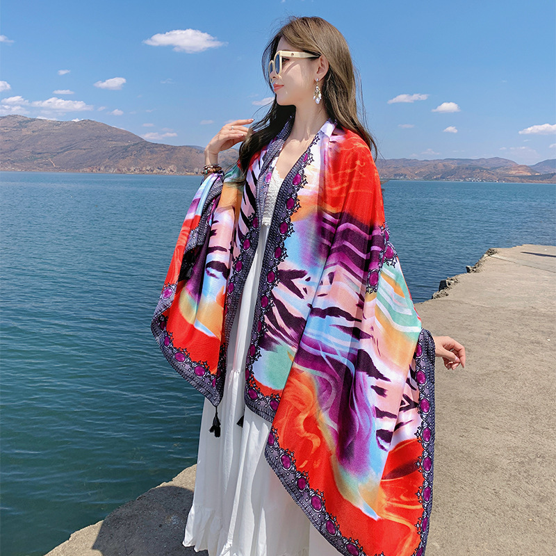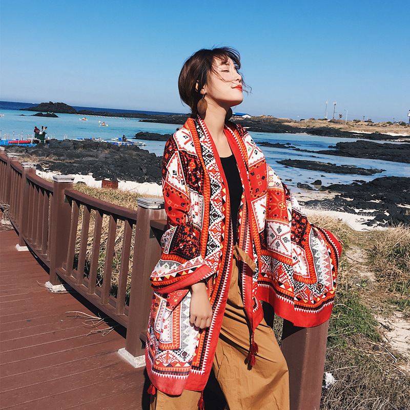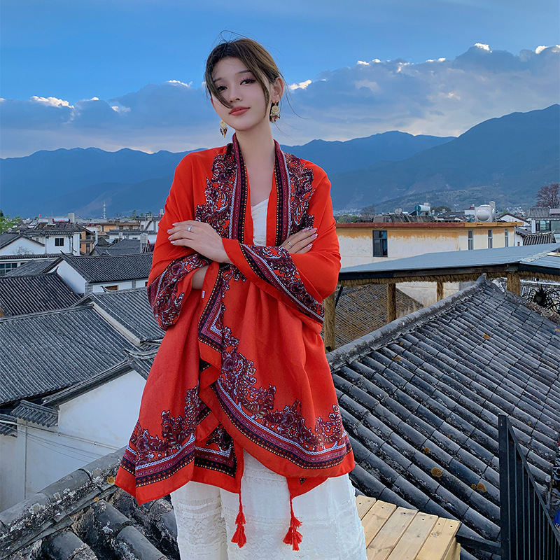 새로운 여름 면화 및 리넨 스카프 여행 스카프 선스크린 에어컨 대형 목도리 여성용 해변 수건 민족 스타일 스카프스토어 가기