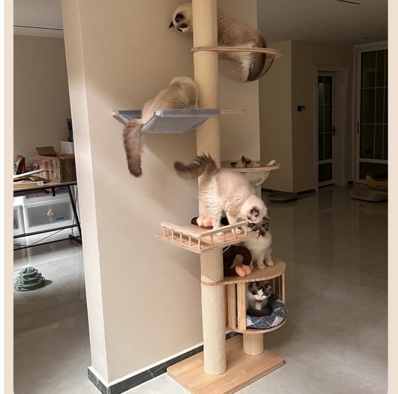 고양이 둥지 기둥 빌라, 고양이 통로 없음, 원목 고양이 클라이밍 프레임, 고양이 집, 고양이 일체형 대형 고양이 트리, 소형 아파트스토어 가기
