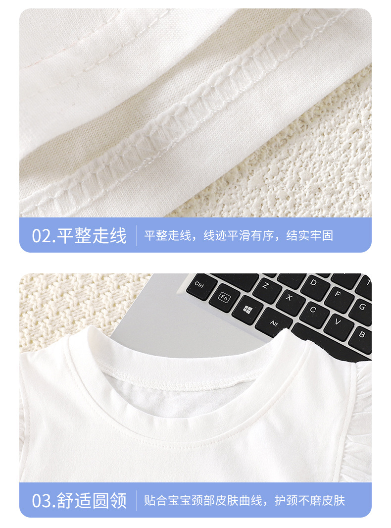 여자 반팔 세트 면 여름 새 소녀 비행 소매 반바지 투피스 세트 유럽과 미국 스타일 아기 여름 아동복