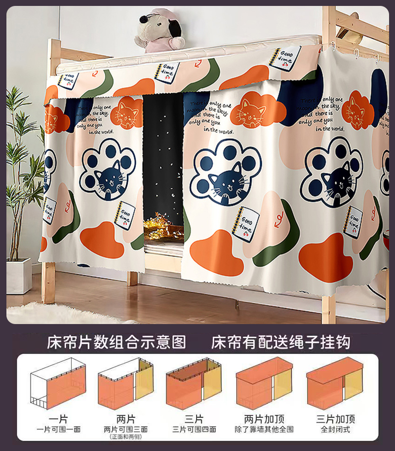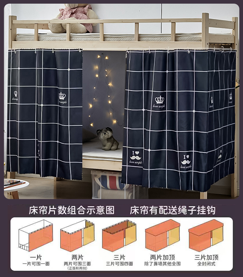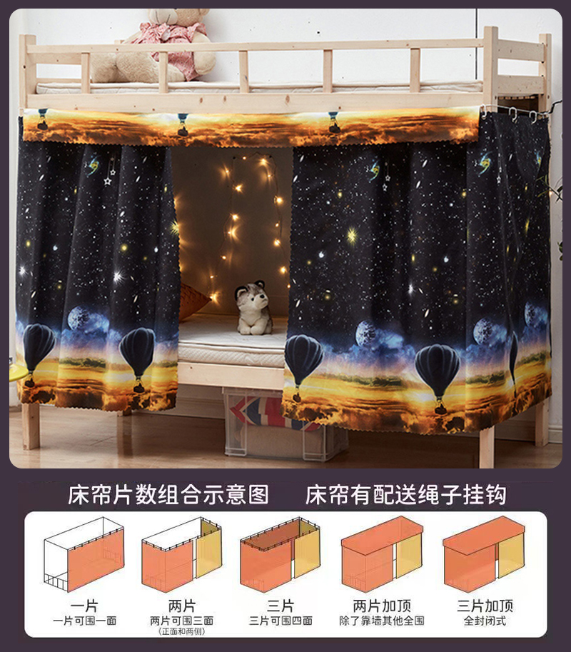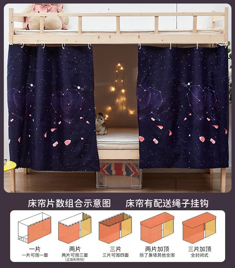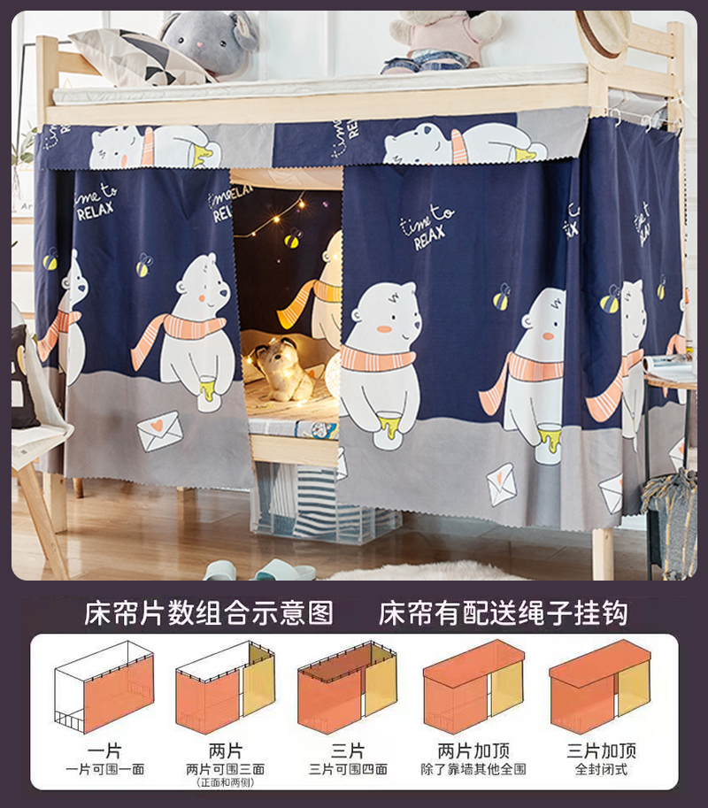 강력한 차광 침대 커튼, 기숙사 침대 커튼, 이층 침대, 여아 침대, 방진 천, 침대 커튼, 이층 침대, 올인클루시브 면