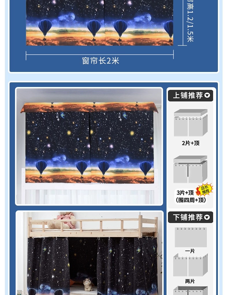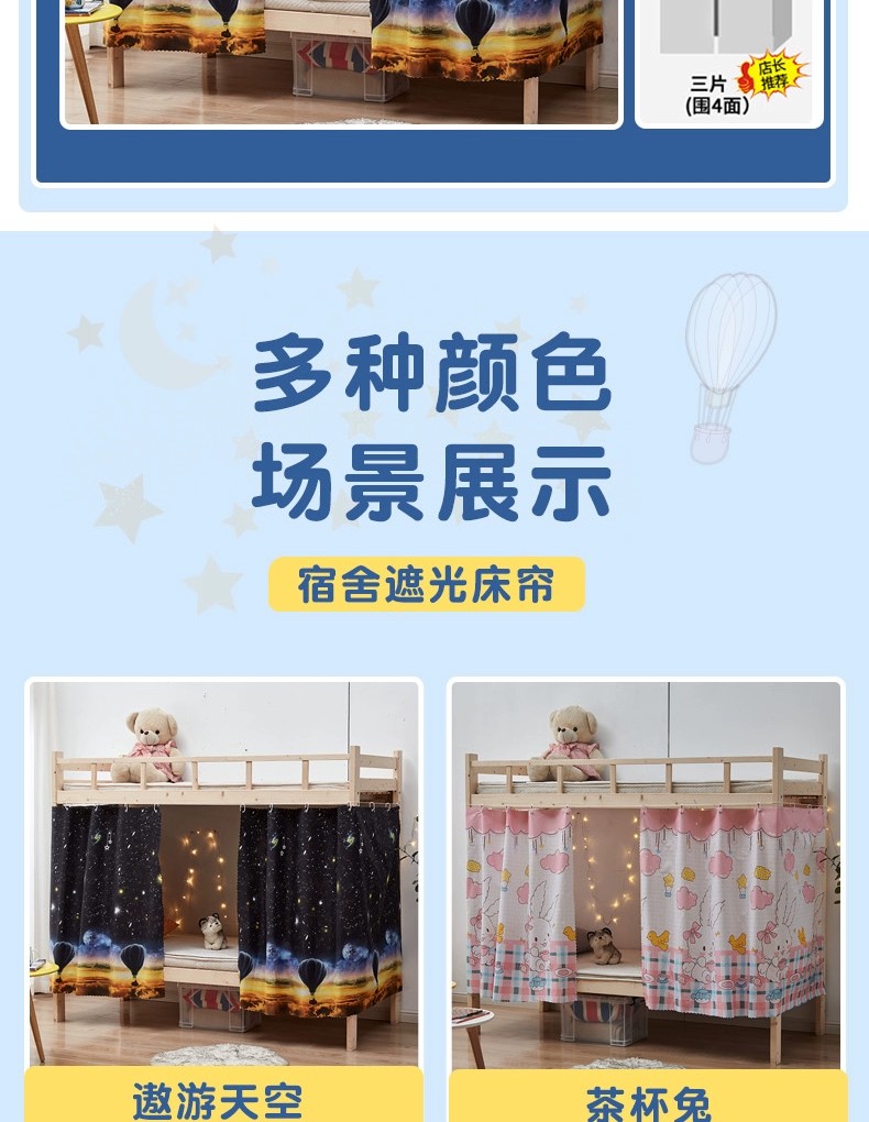 강력한 차광 침대 커튼, 기숙사 침대 커튼, 이층 침대, 여아 침대, 방진 천, 침대 커튼, 이층 침대, 올인클루시브 면스토어 가기