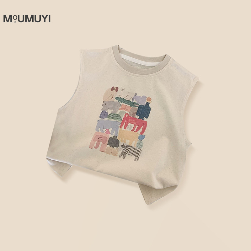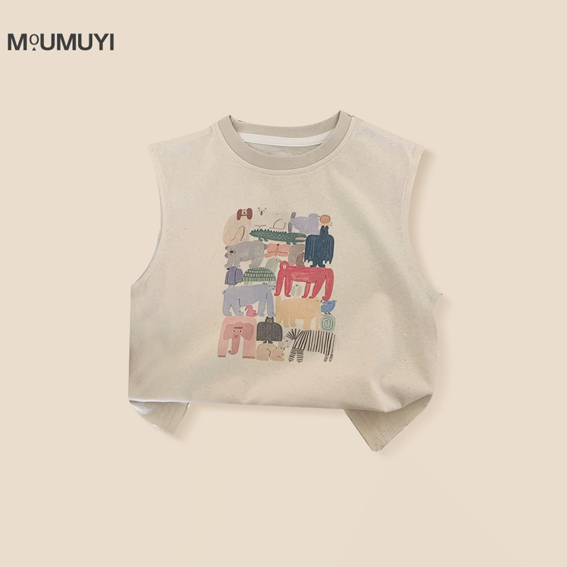 소년 조끼 2025 여름 새로운 어린이 서양식 유행 올 매치 인쇄 조끼 아기 느슨한 캐주얼 반바지