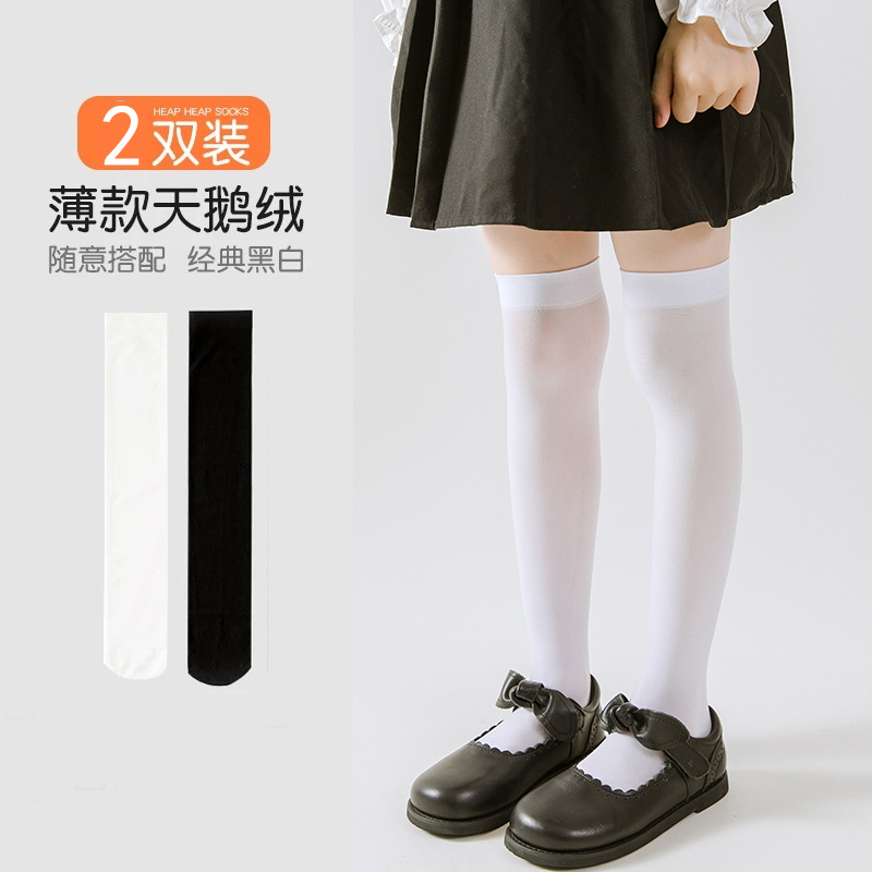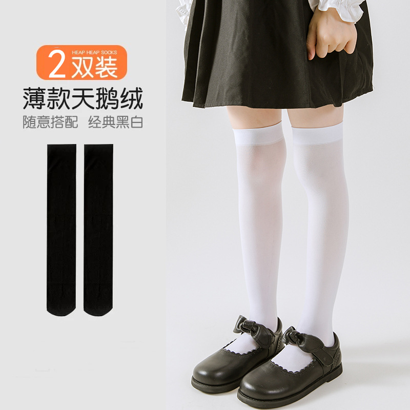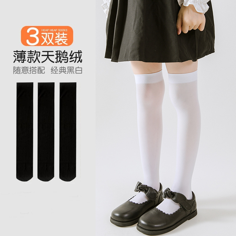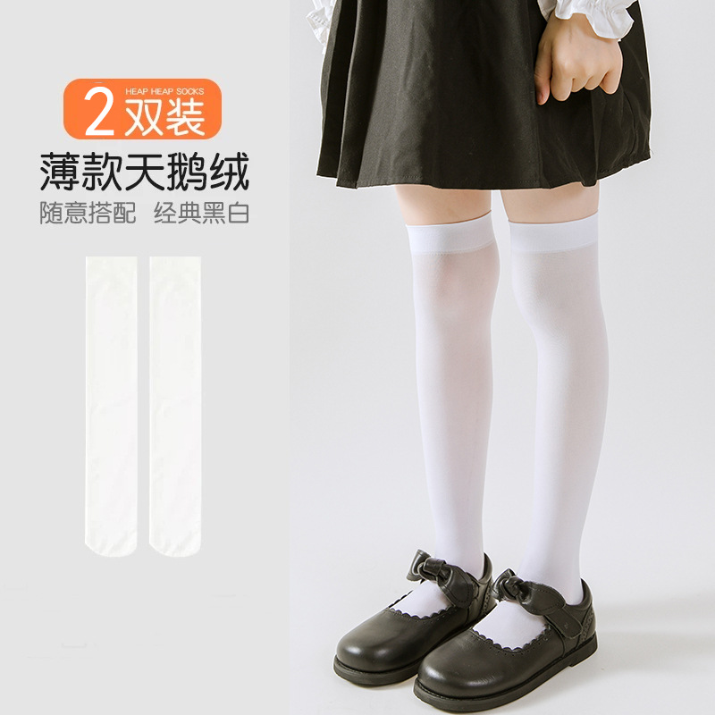 여름 어린이 긴 스타킹 중간 길이의 무릎 위 흰색 소녀의 긴 양말 얇은 벨벳 중간 길이의 어린이 반 길이 양말