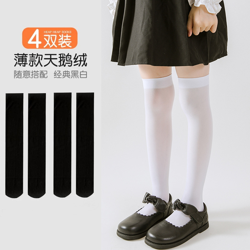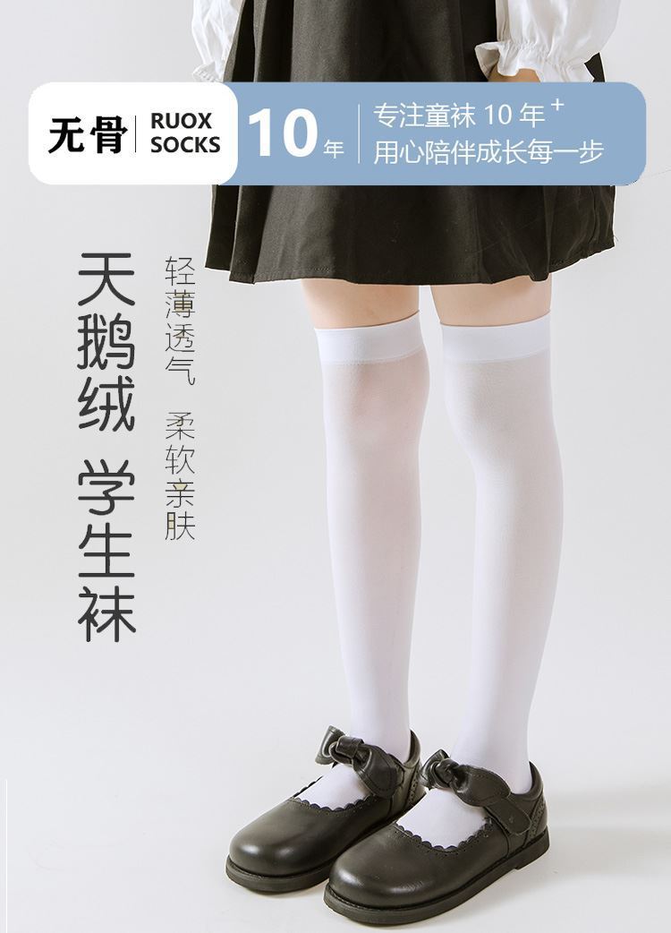 여름 어린이 긴 스타킹 중간 길이의 무릎 위 흰색 소녀의 긴 양말 얇은 벨벳 중간 길이의 어린이 반 길이 양말스토어 가기