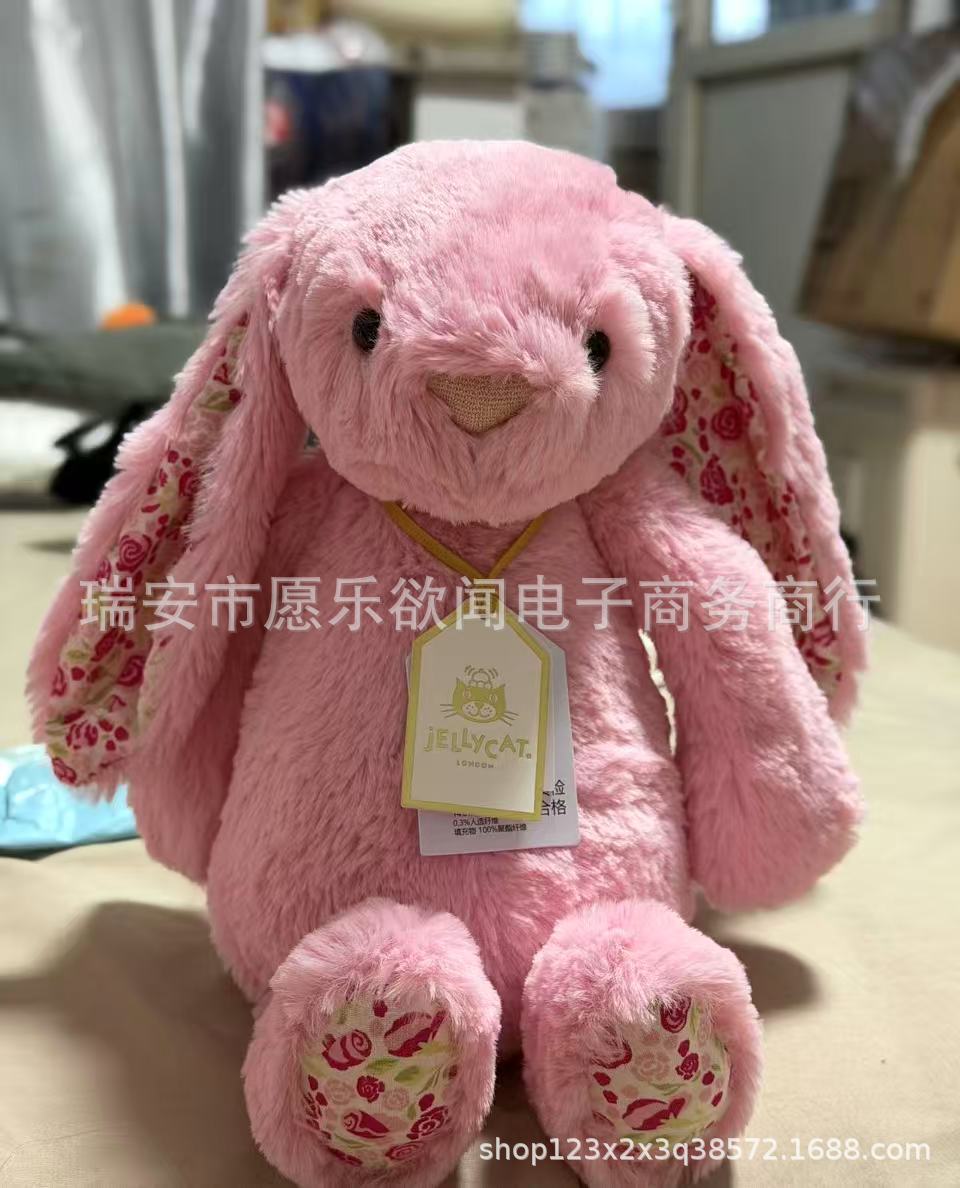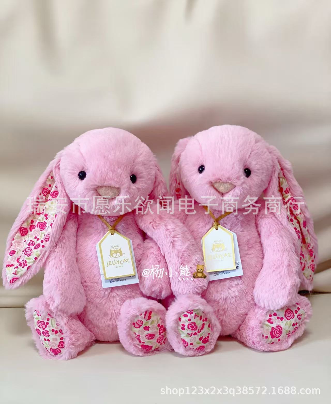 크로스보더 JC 화이트 핑크 보니 토끼 꽃무늬 귀 장식 토끼 창의적인 위로 인형 귀여운 보니 토끼 봉제 인형스토어 가기