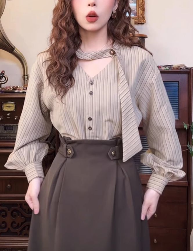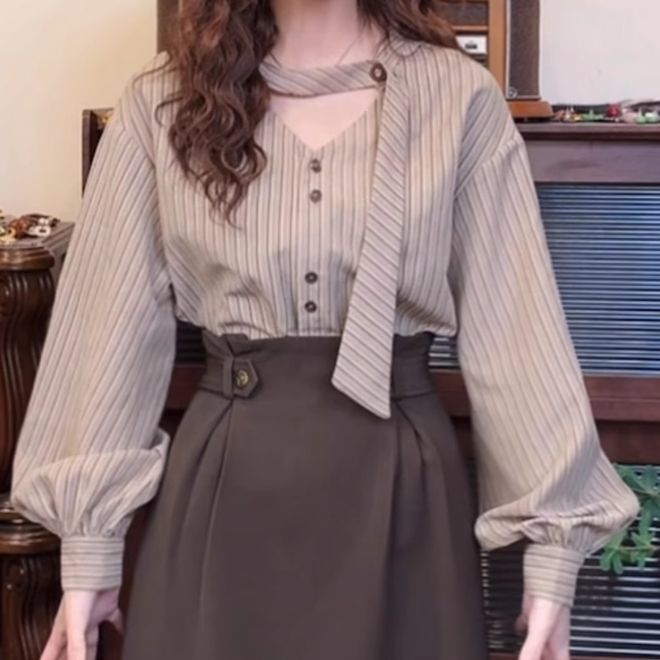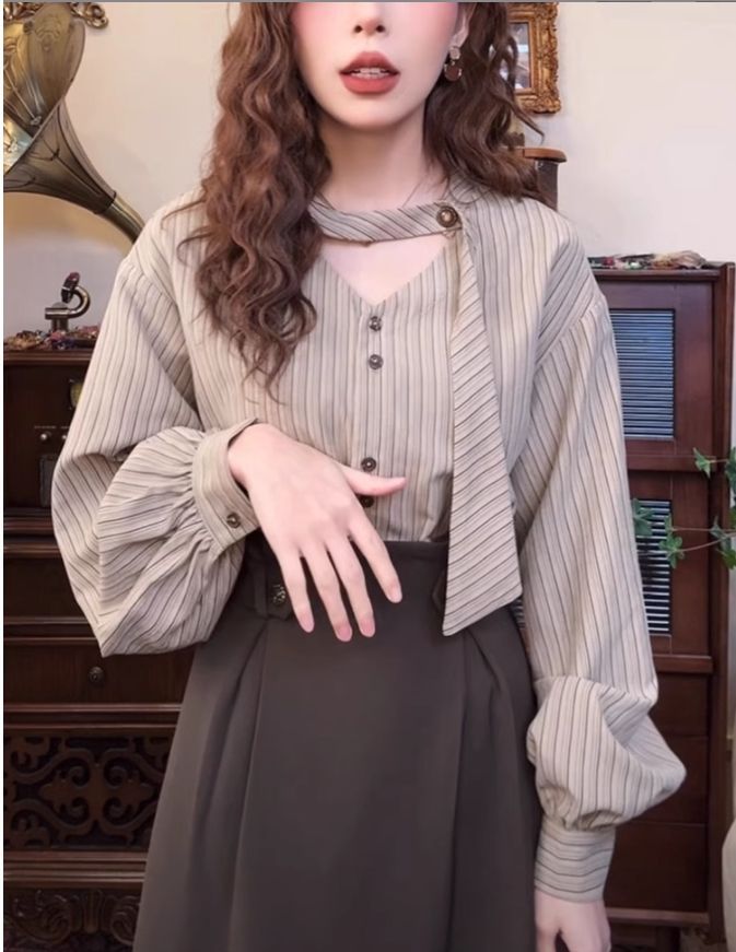 홍콩 스타일 레트로 스트라이프 셔츠 여성을위한 2025 새로운 스타일 우아한 봄 스트리머 셔츠 라이트 럭셔리 하이 엔드 센스 탑스토어 가기
