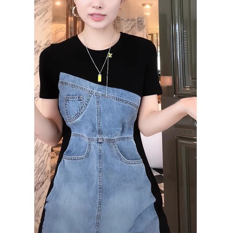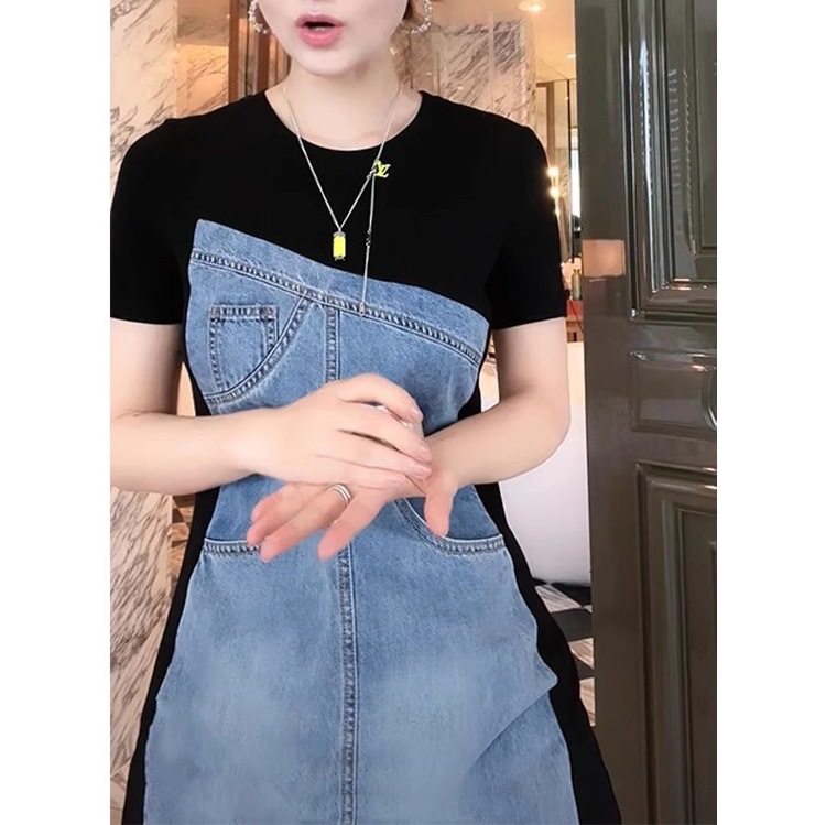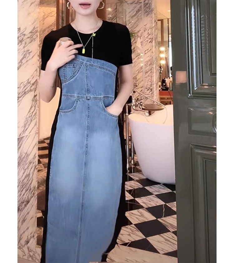 프랑스 스티칭 데님 원피스 여성 2025 년 여름 새로운 슬림 핏 슬림 핏 하이 엔드 타이트 웨이스트 스커트스토어 가기