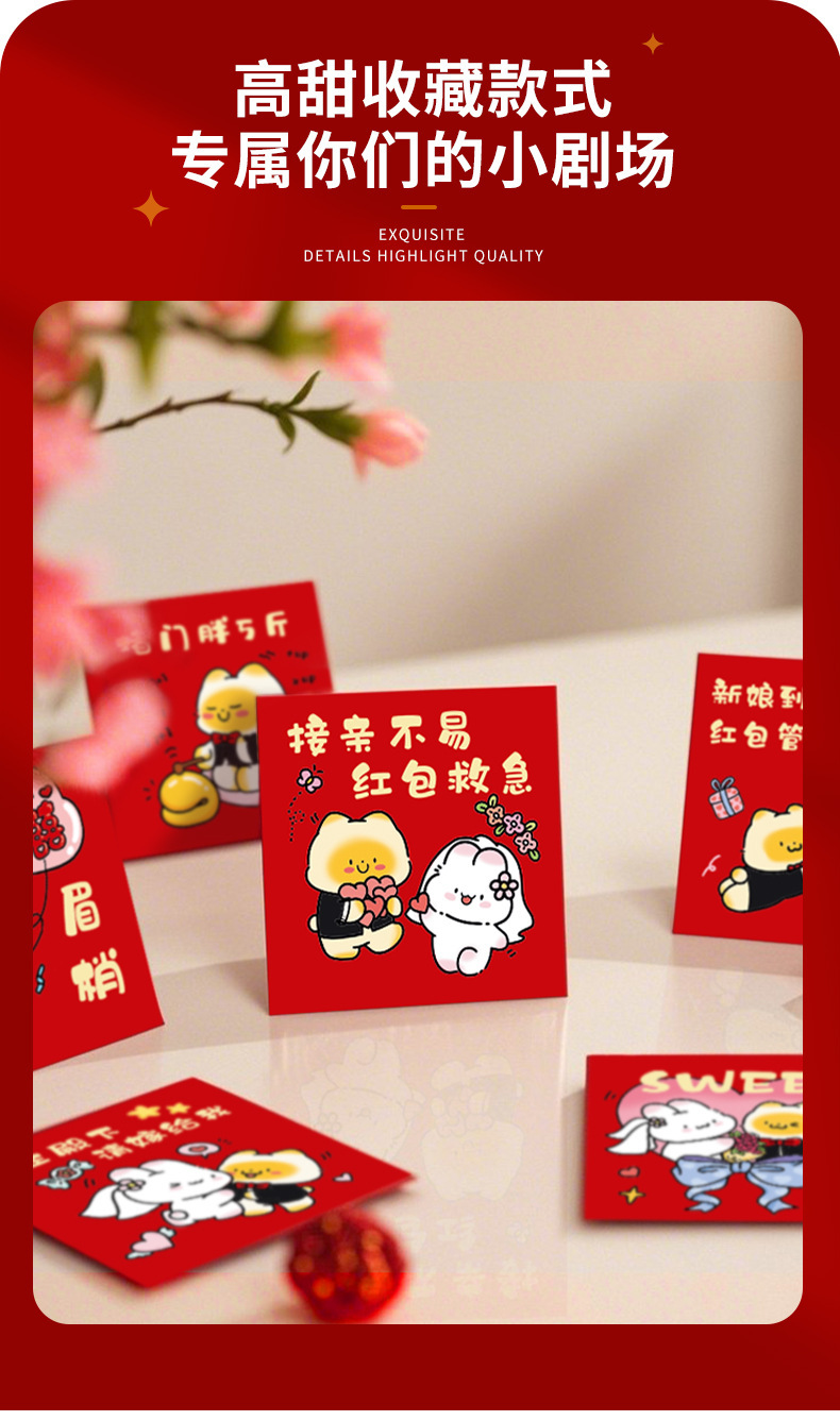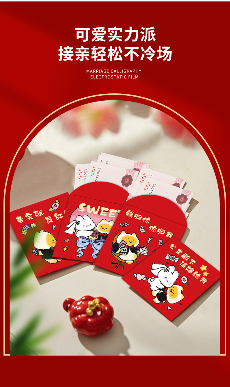 고양이와 토끼 만화 빨간 봉투 결혼식 용품 결혼식 용품 하드 빨간 봉투 크리 에이 티브 종이 빨간 봉투 결혼식을 환영하는 빨간 봉투스토어 가기