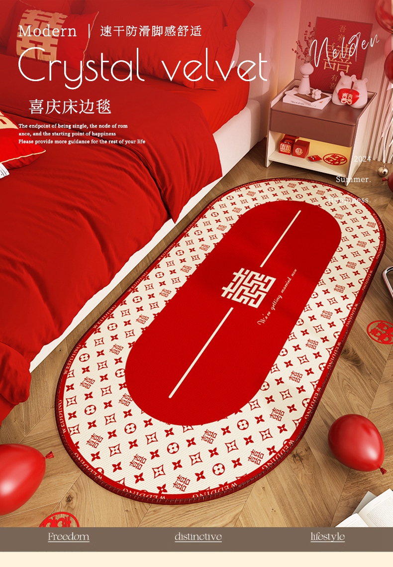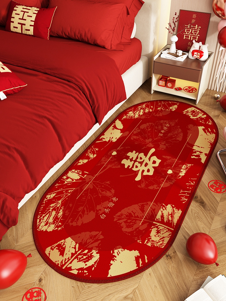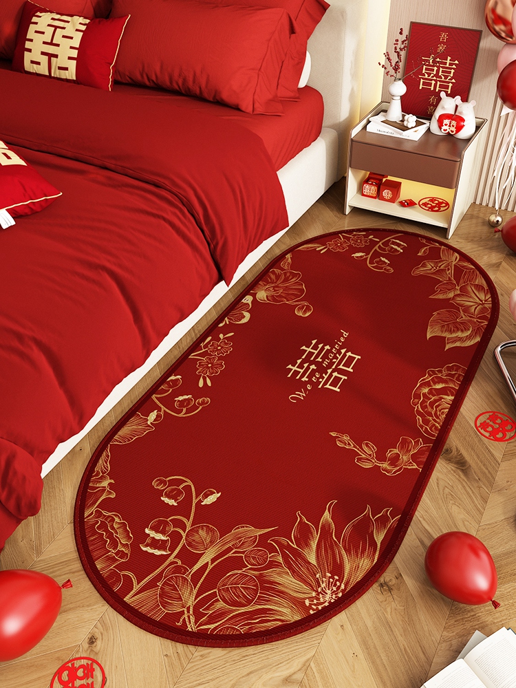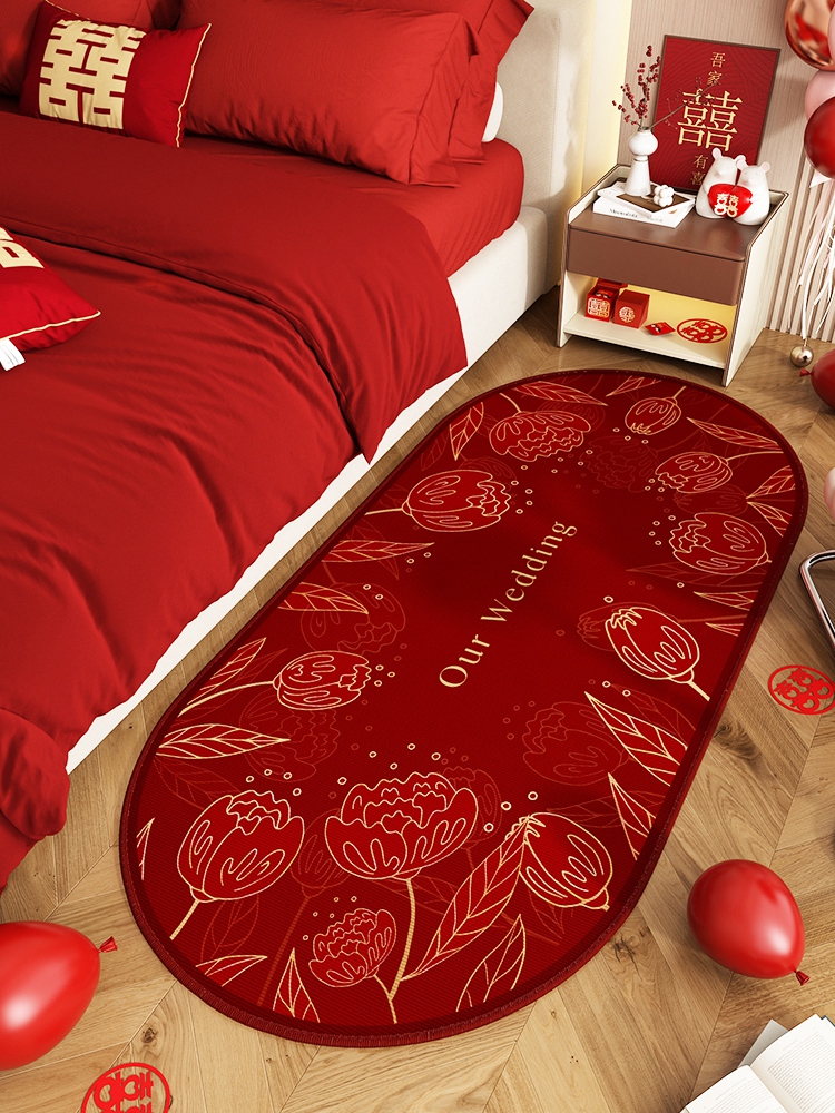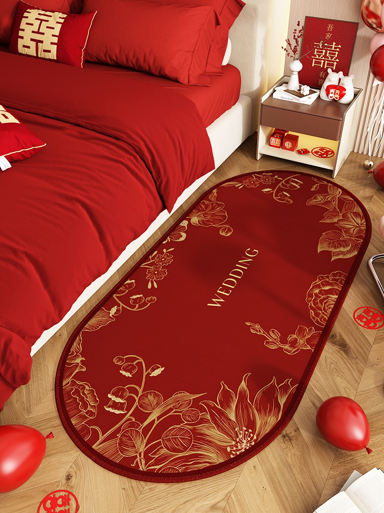kt 웨딩 침대 옆 카펫 침실 바닥 매트 웨딩 룸 빨간색 축제 바닥 매트 신혼 방 침대 아래 미끄럼 방지 축제 발스토어 가기