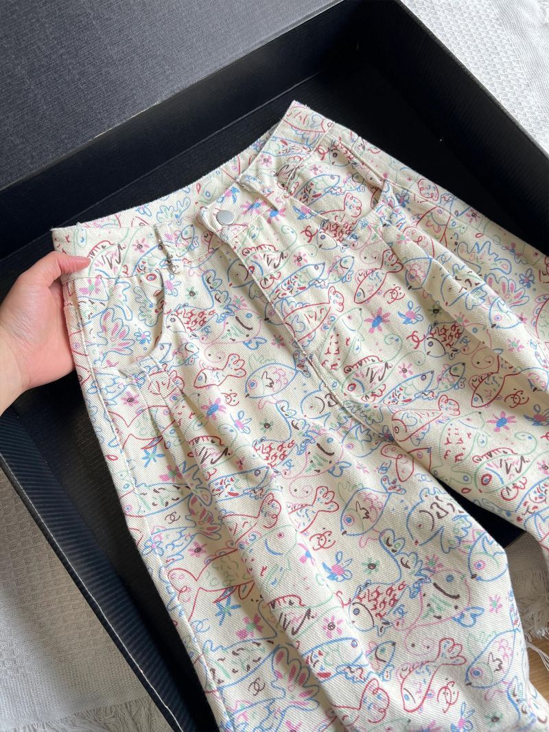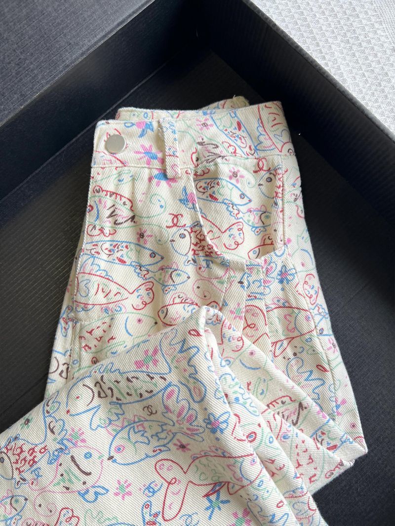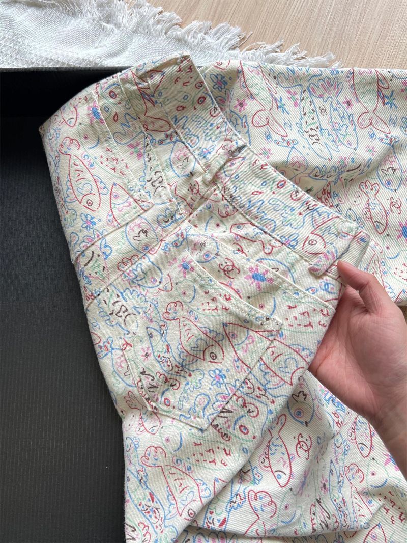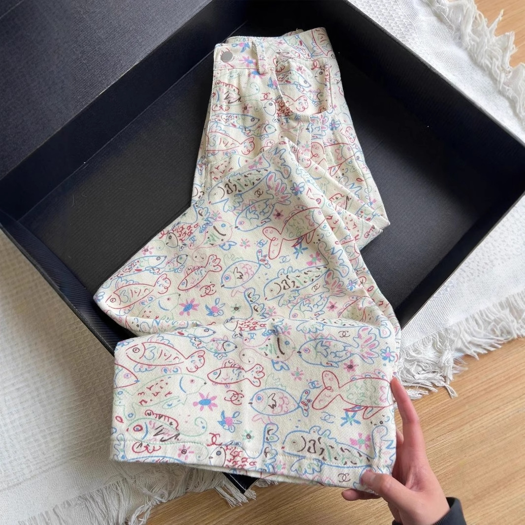 미국 하이 스트리트 그래피티 인쇄 2025 봄 새로운 느슨한 올매치 높은 허리 캐주얼 데님 와이드 다리 바지스토어 가기