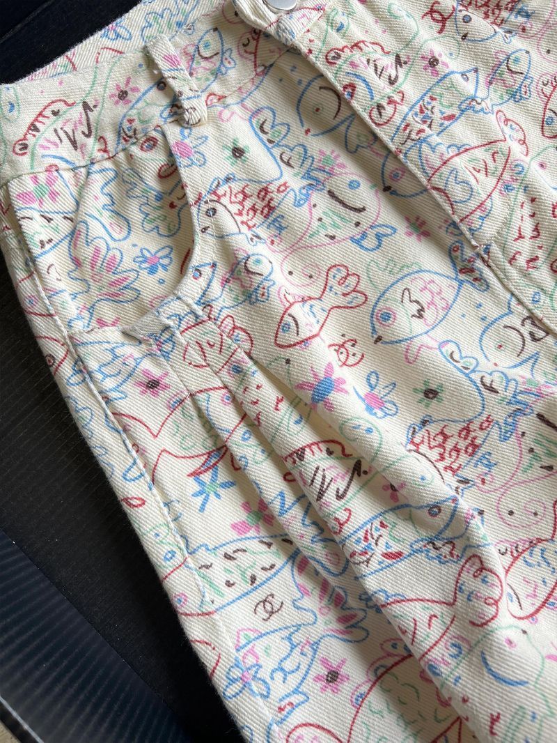 미국 하이 스트리트 그래피티 인쇄 2025 봄 새로운 느슨한 올매치 높은 허리 캐주얼 데님 와이드 다리 바지
