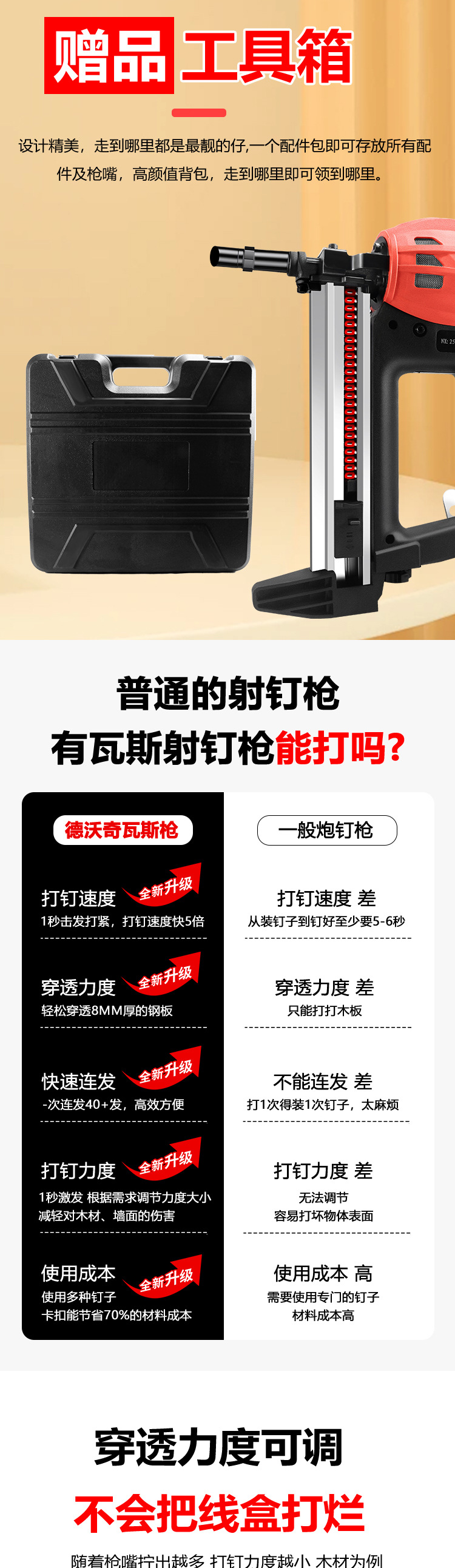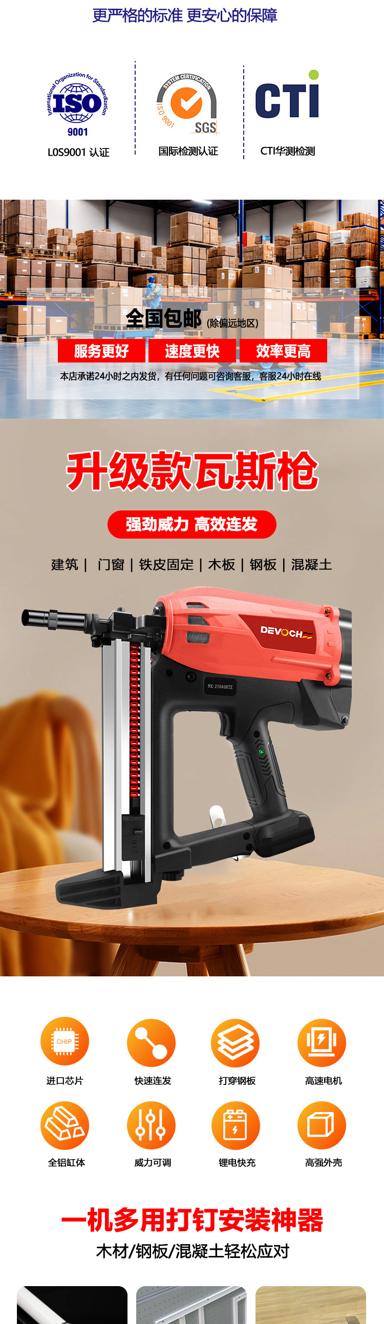 DEVOCHEE 가스 건 직렬 연속 스틸 네일 슈팅 네일 건 리튬 전기 네일 건 엔지니어링 산업용 수력 발전 장식스토어 가기