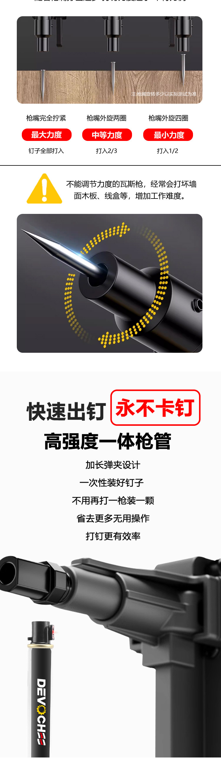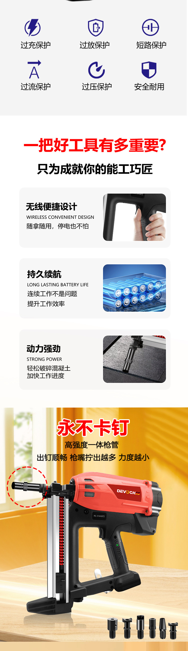 DEVOCHEE 가스 건 직렬 연속 스틸 네일 슈팅 네일 건 리튬 전기 네일 건 엔지니어링 산업용 수력 발전 장식