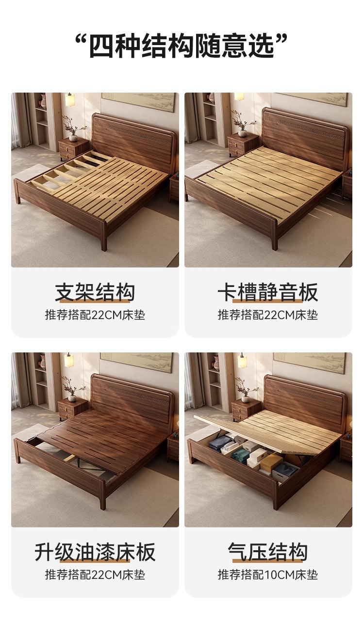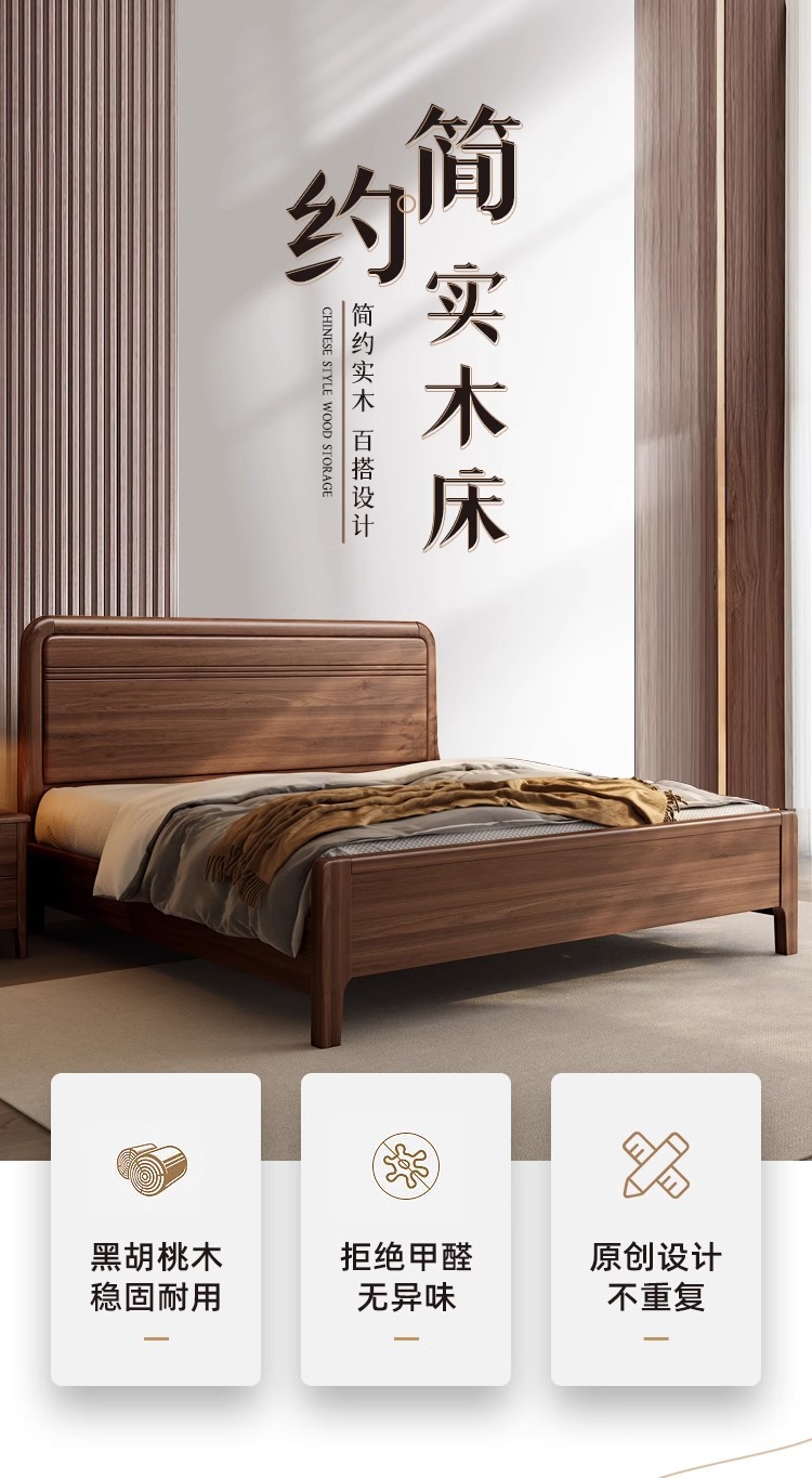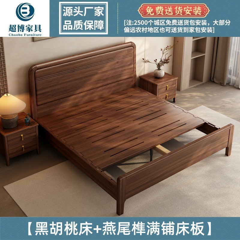 호두 1 미터 8 베드 호텔 홈스테이 침실 전체 단단한 더블 침대 조명 고급 홈 마스터 침실 1 미터 5 퀸 침대 웨딩 침대스토어 가기