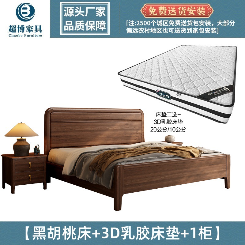 • 블랙 월넛 침대 + 3D 라텍스 매트리스 + 캐비닛 1개