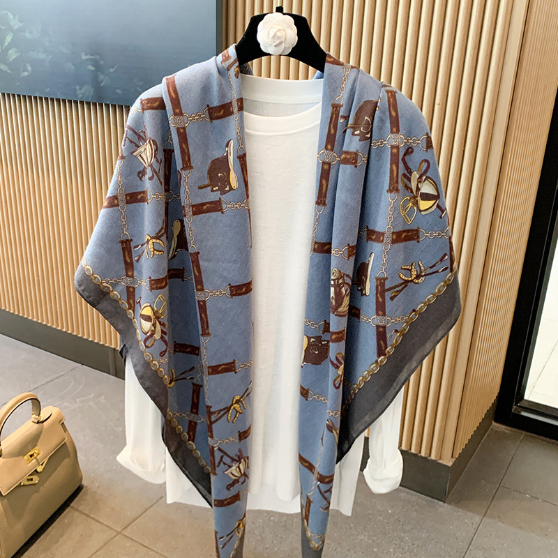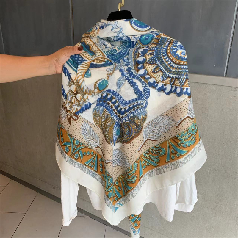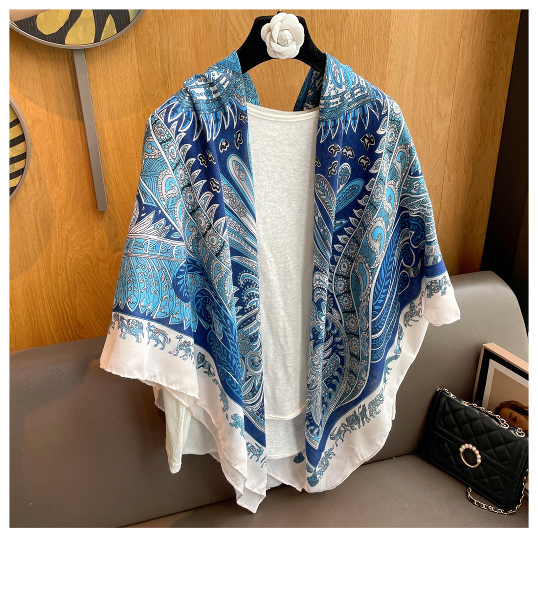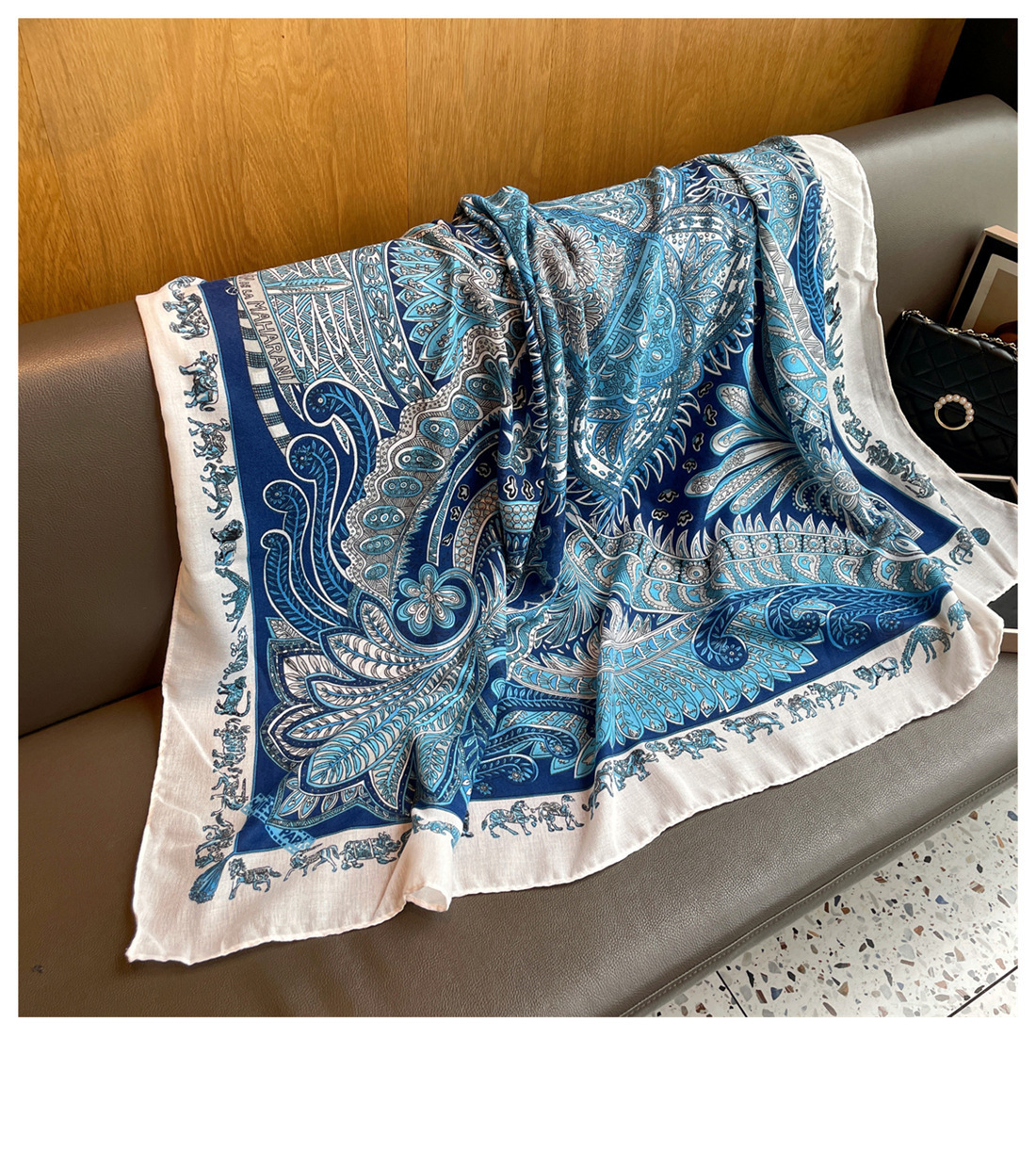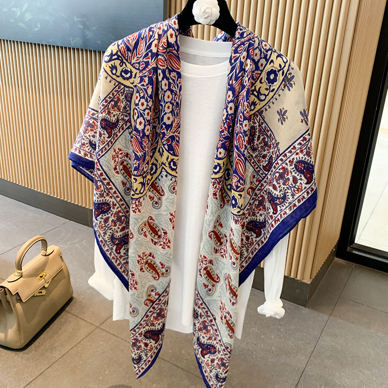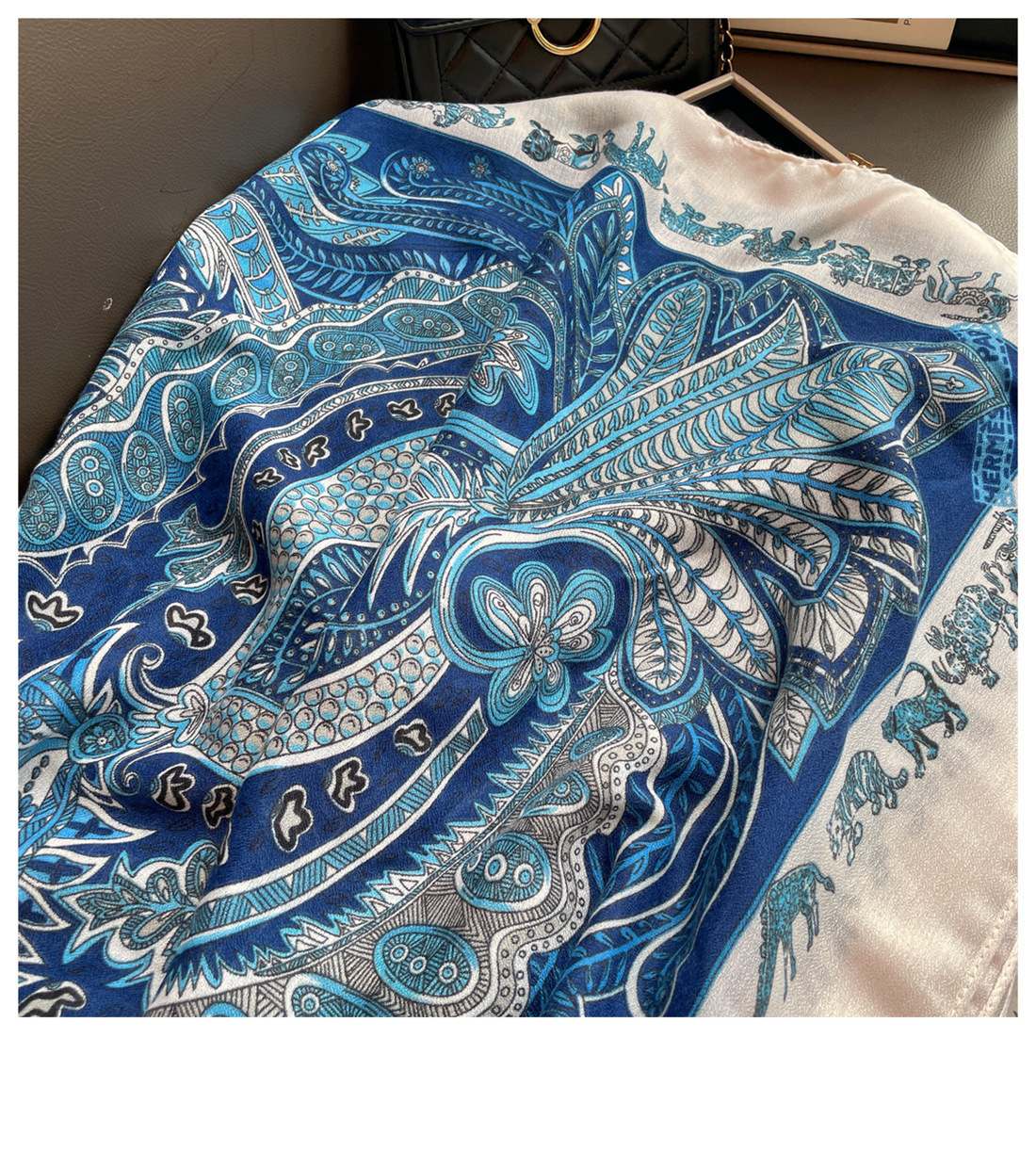 블루 레트로 130 대형 스퀘어 2024 여름 새로운 에어컨 룸 목도리 선스크린 실크 스카프 봄과 가을 리넨 스카프